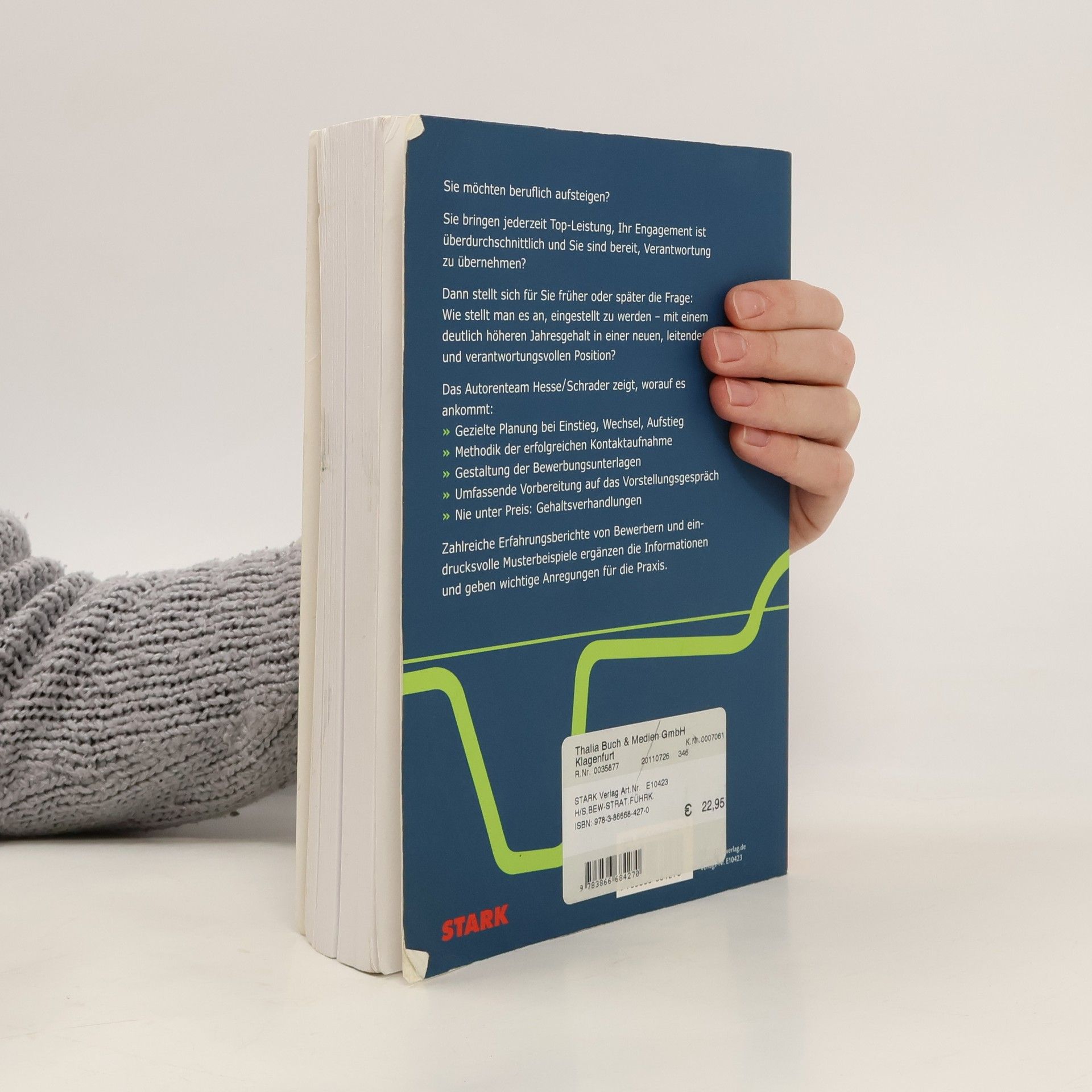 Sie möchten beruflich aufsteigen? Sie bringen jederzeit Top-Leistung, Ihr Engagement ist überdurchschnittlich und Sie sind bereit, Verantwortung zu übernehmen? Dann stellt sich für Sie früher oder später die Frage: Wie stellt man es an, eingestellt zu werden – mit einem deutlich höheren Jahresgehalt in einer neuen, leitenden und verantwortungsvollen Position? Das Autorenteam Hesse/Schrader zeigt, worauf es ankommt: Gezielte Planung bei Einstieg, Wechsel, Aufstieg Methodik der erfolgreichen Kontaktaufnahme Gestaltung der Bewerbungsunterlagen Umfassende Vorbereitung auf das Vorstellungsgespräch Nie unter Preis: Gehaltsverhandlungen Zahlreiche Erfahrungsberichte von Bewerbern und eindrucksvolle Musterbeispiele ergänzen die Informationen und geben wichtige Anregungen für die Praxis.