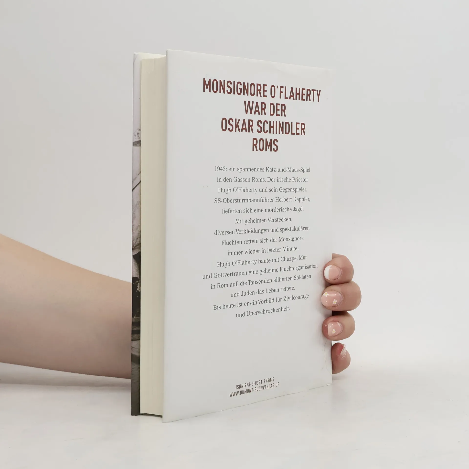 Es war ein spannendes, atemberaubend schnelles Katz- und Maus-Spiel, das sich der irische Priester Monsignore Hugh O’Flaherty und der SS-Obersturmbannführer Herbert Kappler während der deutschen Besetzung Roms von 1943 bis 1944 lieferten. Doch trotz O’Flahertys geheimer Verstecke, diverser Verkleidungen und spektakulärer Fluchten in letzter Minute ist es keine Don-Camillo-und-Peppone-Geschichte, die uns Arne Molfenter und Rüdiger Strempel hier erzählen – für Tausende ging es ums nackte Überleben. O’Flaherty baute mit Chuzpe, Mut und Gottvertrauen eine geheime Fluchtorganisation für alliierte Soldaten und Juden in Rom auf. Er versteckte die Flüchtlinge teils im Vatikan, teils in Römischen Privathäusern. Zwischen O’Flaherty und Kappler begann eine mörderische Jagd. Keine andere Einzelperson hat im Zweiten Weltkrieg mehr alliierten Soldaten das Leben gerettet als O’Flaherty. Insgesamt bewahrte er mehr als 6.500 Menschen aus 25 Nationen vor Verhaftung, Folter und Tod. Bis heute ist er ein Vorbild für Zivilcourage und Unerschrockenheit geblieben.