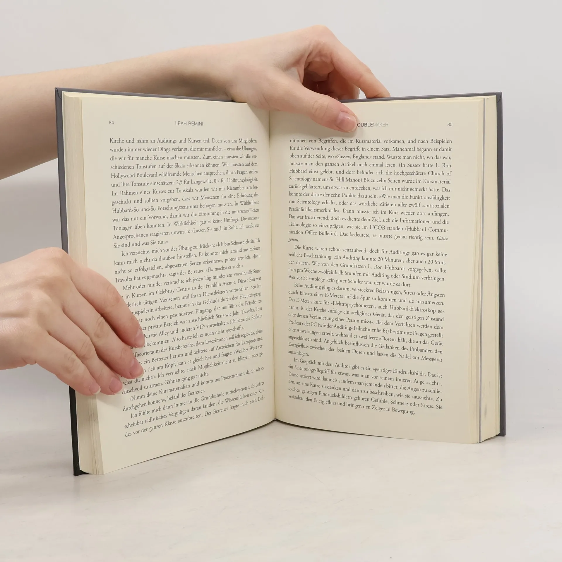 Die Schauspielerin Leah Remini ist mit Scientology aufgewachsen. Da ihre Eltern dieser Sekte angehörten, wurde sie schon in ihrer frühen Kindheit indoktriniert. Auch auf ihrem harten Karriereweg – von der unbedeutenden Nebenrolle bis zum gefeierten Serienstar in King of Queens – wurde sie stets von Scientology begleitet. Als prominentes Mitglied der Sekte lernte sie auch Tom Cruise kennen und war sogar Gast auf dessen Hochzeit mit Katie Holmes. Vor einigen Jahren begann Remini aber, die kontroversen Aktionen und Repressionen von Scientology zu hinterfragen, und wurde so zum „Troublemaker“. Dadurch war sie nicht nur Zielscheibe von Angriffen, sondern Scientology sah sie sogar als Bedrohung. Schließlich brach sie 2013 endgültig mit der Glaubensgemeinschaft und verlor dadurch auch den Kontakt zu vielen Freunden. Nun hat Remini ein Buch über diese Erlebnisse geschrieben und gibt unverfälschte und erschreckende Einblicke hinter die Kulissen von Scientology. In den USA schlug ihre Biografie große Wellen und avancierte dank der spannenden Story und der schockierenden Enthüllungen zum New York Times-Bestseller.