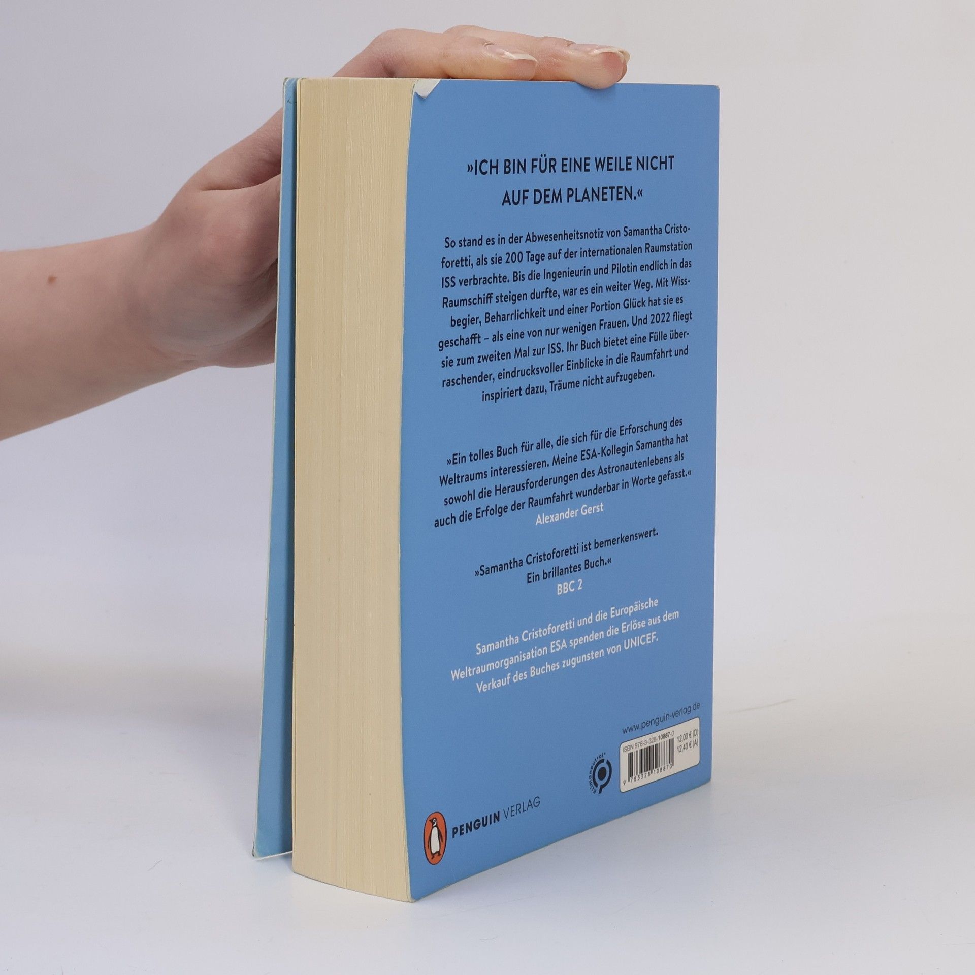 Beeindruckend und inspirierend: Die faszinierende Reise der sympathischen Astronautin zur ISS »Ich bin für eine Weile nicht auf dem Planeten. Zurück im Mai«. Das war die Abwesenheitsnotiz von Samantha Cristoforetti, als sie 200 Tage auf der ISS verbrachte. Bis die Ingenieurin und Pilotin endlich in das Raumschiff stieg, war es ein weiter Weg, den sie mit Wissbegier, Beharrlichkeit und einer Portion Glück absolvierte – als eine von nur wenigen Frauen. Persönlich und humorvoll schildert sie ihre Erfahrungen, von den harten Astronautenlehrjahren über die Zeit im All bis hin zur Rückkehr auf die Erde. Welche Gedanken begleiten die letzten Stunden vor dem Abflug? Womit entspannt man sich nach einem langen Arbeitstag auf der Raumstation? Wie fängt man einen Raumtransporter ein? Mit einem wunderbaren Blick für die Herausforderungen und Merkwürdigkeiten des Astronautenberufs nimmt sie uns mit auf eine unvergleichliche Reise. Seit 28. April 2022 ist Samantha Cristoforetti für fünf Monate erneut auf der ISS. Ausstattung: mit Abbildungen