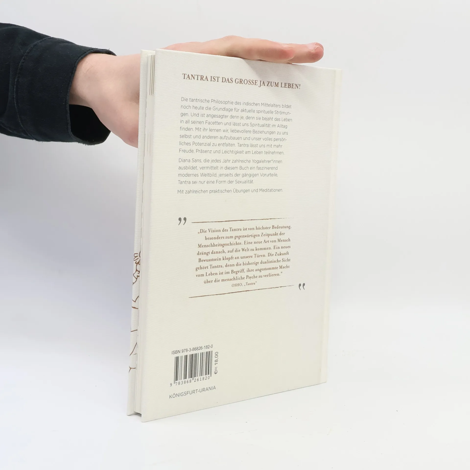 Diana Sans unterrichtet Yoga und bildet Yogalehrer*innen aus. Auf der Suche nach moderner Spiritualität und lebensbejahender Einstellung als Basis ihrer Kurse entdeckte sie die Philosophie des Tantra, die sie an ihre begeisterten Schüler*innen weitergibt. Denn Tantra ist das Große JA zum Leben! Die tantrische Philosophie des indischen Mittelalters bildet noch heute die Grundlage für aktuelle spirituelle Strömungen. Und ist angesagter denn je, denn sie ermöglicht Spiritualität im täglichen Leben. Diana Sans vermittelt das faszinierend moderne Weltbild, jenseits der gängigen Vorurteile, Tantra sei nur eine Form der Sexualität. Feinsinnig gestaltet, mit praktischen Übungen und Meditationen. Edler Einband, Goldprägung, zahlreiche Illustrationen, Leseband.