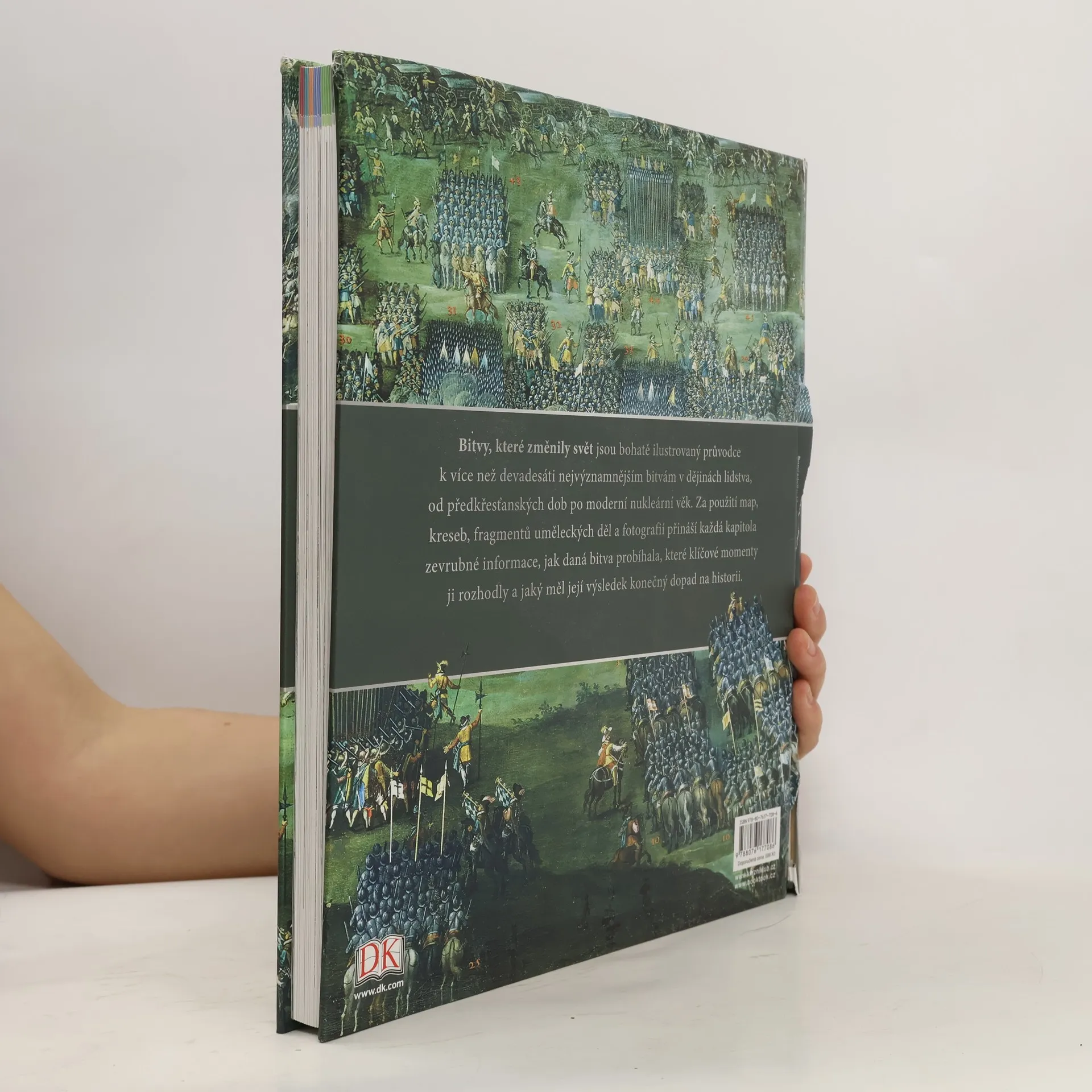 Kolik bitev v dějinách lidstva změnilo současný svět? Klíčové vojenské konflikty spoluutvářely hranice států, politické uspořádání, kulturní základy, a tedy životy lidí. Tato jedinečná, bohatě graficky pojatá kniha přibližuje nejvýznamnější válečné konflikty moderní civilizace. Od antických válek u Maratonu či Thermopyl přes středověké bitvy u Kresčaku či Moháče, napoleonské války, velké světové konflikty 20. století po války poměrně nedávné, jako v Zálivu nebo v Iráku.