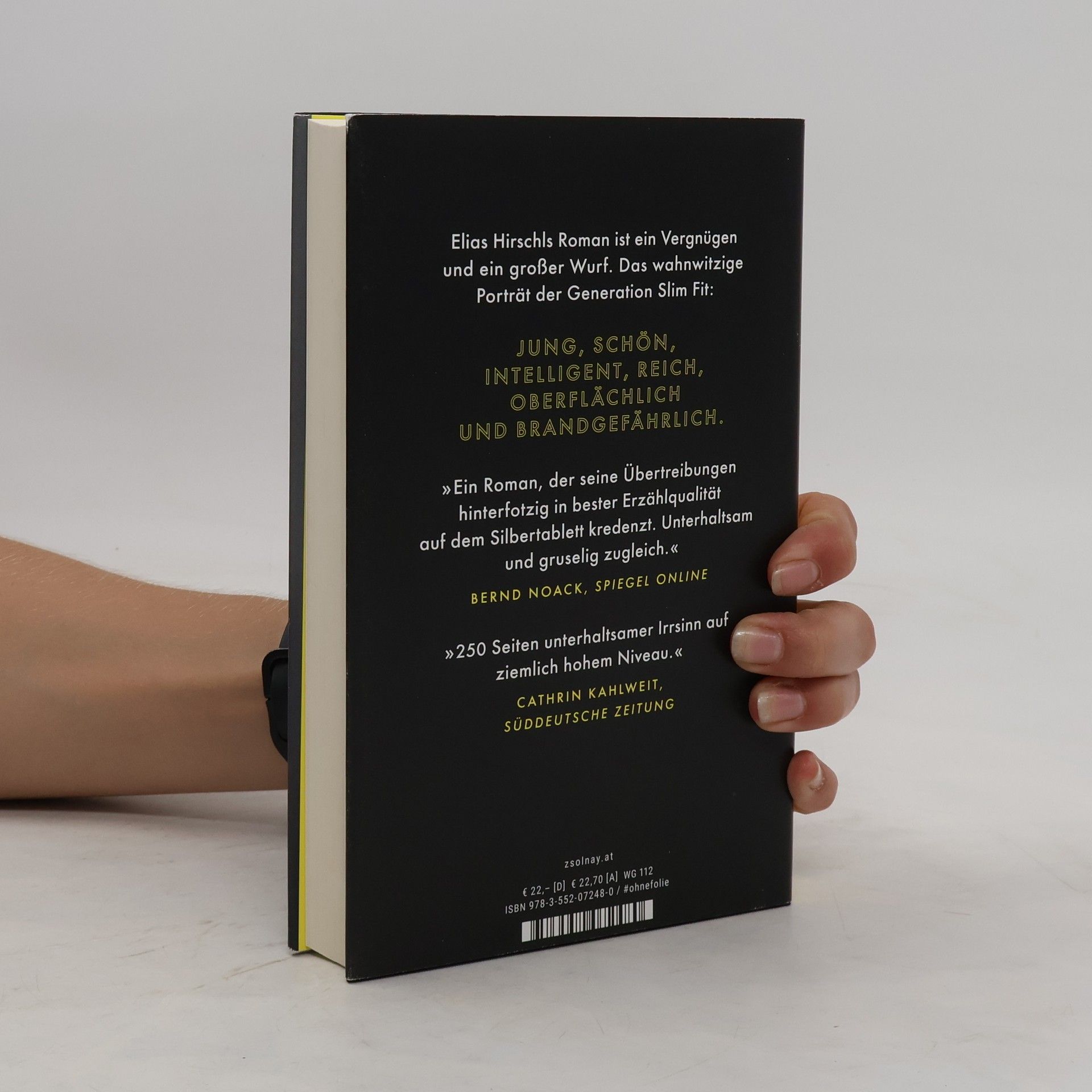 Was, wenn man sich ein perfektes Leben wie eine zweite Haut überziehen könnte? Willkommen bei Austrian Psycho Stundenlang übt er vor dem Spiegel seinen Gang, sein Lächeln, seine Art zu sprechen. Julius Varga, der Parteichef, ist das ganz große Idol des namenlosen Erzählers. „Ich gebe mich für dich auf, Julius. Ich liebe dich.“ In seiner Abwesenheit gießt er seine Zimmerpflanzen, als ob dies ein Staatsakt wäre. Auf einer unteren Ebene dient der Erzähler der Partei und eifert seinem Vorbild nach. Er ist besessen von Marken und Äußerlichkeiten und der Ästhetik von Terroranschlägen. Elias Hirschls neuer Roman ist ein großer Wurf und ein Vergnügen. Das wahnwitzige Porträt der Generation Slim Fit: jung, schön, intelligent, reich, oberflächlich und brandgefährlich.