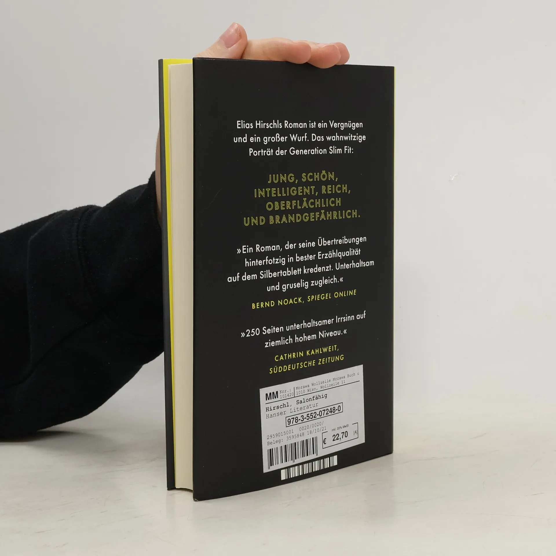 Was, wenn man sich ein perfektes Leben wie eine zweite Haut überziehen könnte? Willkommen bei Austrian Psycho Stundenlang übt er vor dem Spiegel seinen Gang, sein Lächeln, seine Art zu sprechen. Julius Varga, der Parteichef, ist das ganz große Idol des namenlosen Erzählers. „Ich gebe mich für dich auf, Julius. Ich liebe dich.“ In seiner Abwesenheit gießt er seine Zimmerpflanzen, als ob dies ein Staatsakt wäre. Auf einer unteren Ebene dient der Erzähler der Partei und eifert seinem Vorbild nach. Er ist besessen von Marken und Äußerlichkeiten und der Ästhetik von Terroranschlägen. Elias Hirschls neuer Roman ist ein großer Wurf und ein Vergnügen. Das wahnwitzige Porträt der Generation Slim Fit: jung, schön, intelligent, reich, oberflächlich und brandgefährlich.