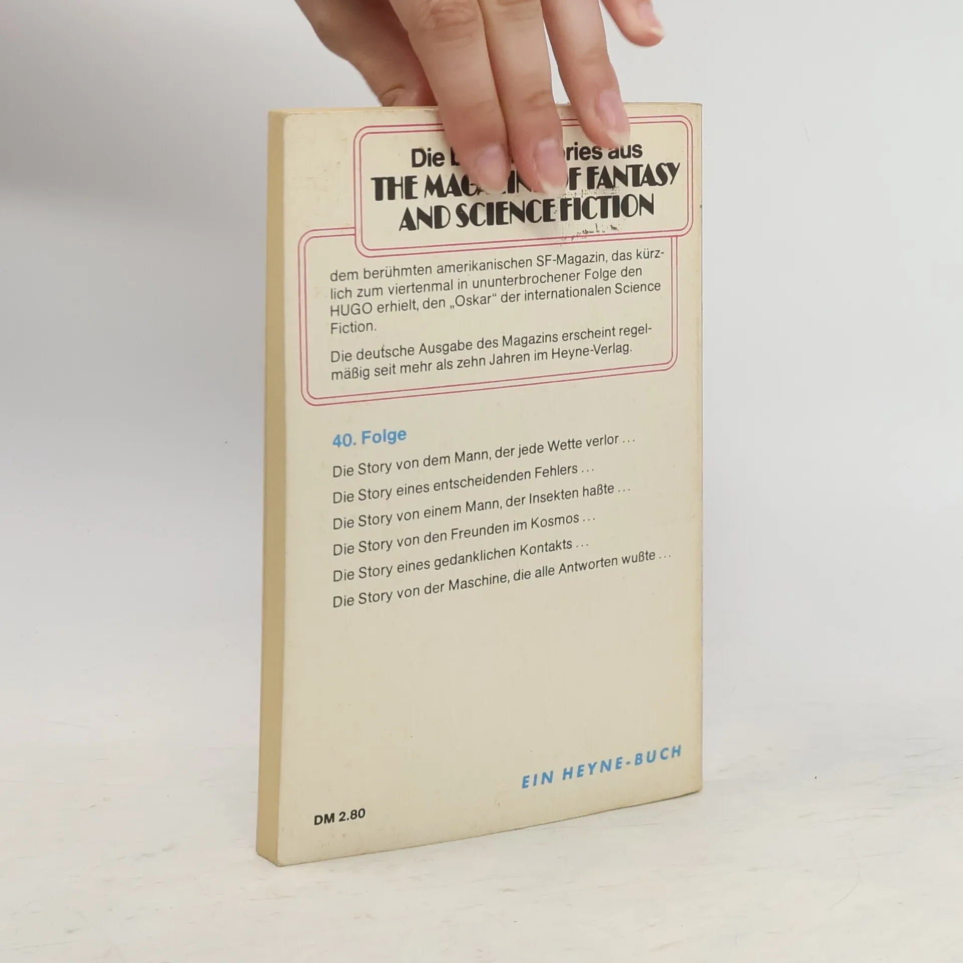 Die Story von dem Mann, der jede Wette verlor ... Die Sfory eines entscheidenden Fehlers ... Die Story von einem Mann, der Insekten hasste ... Die Story von den Freunden im Kosmos ... Die Story eines gedanklichen Kontakts ... Die Story von der Maschine, die alle Antworten wusste ...