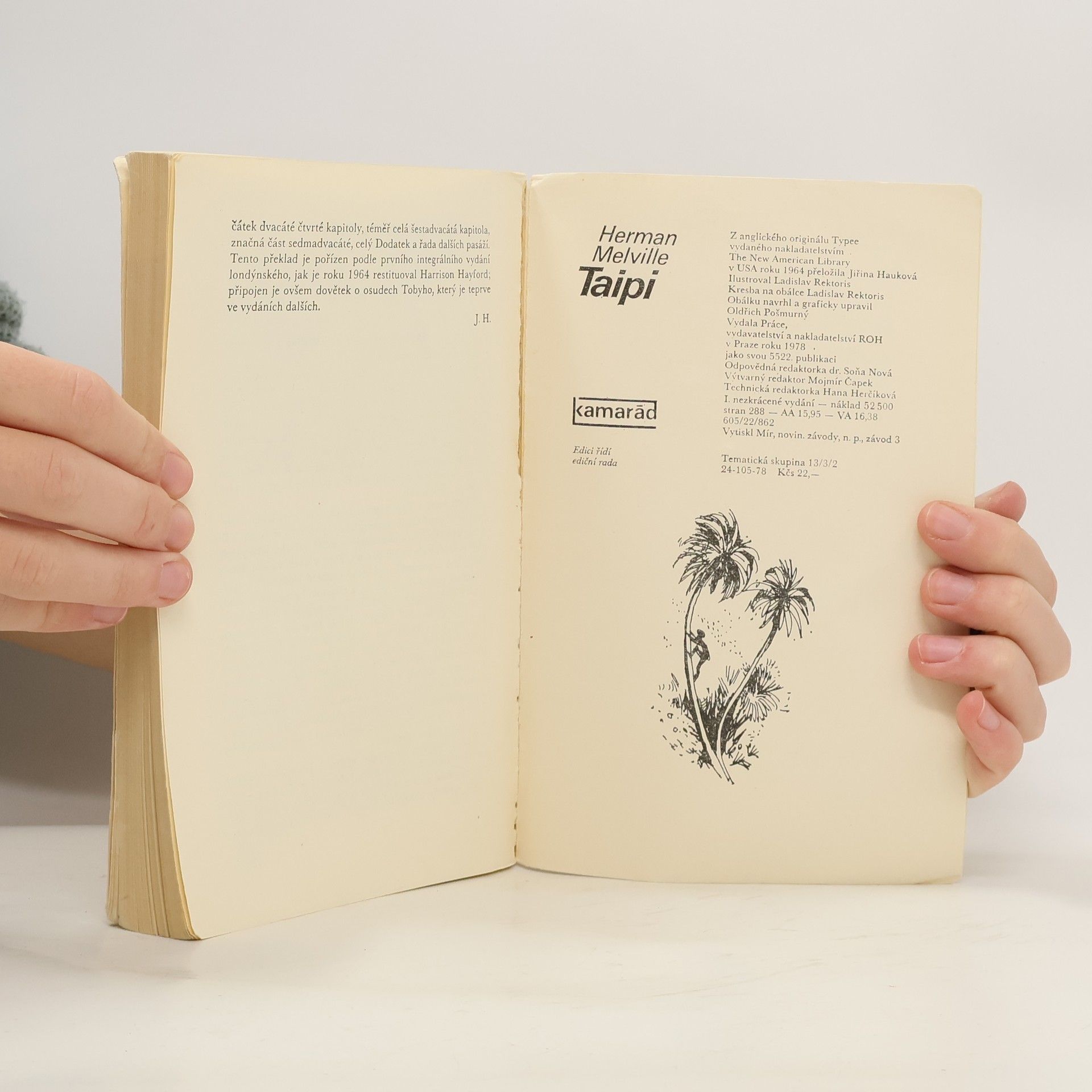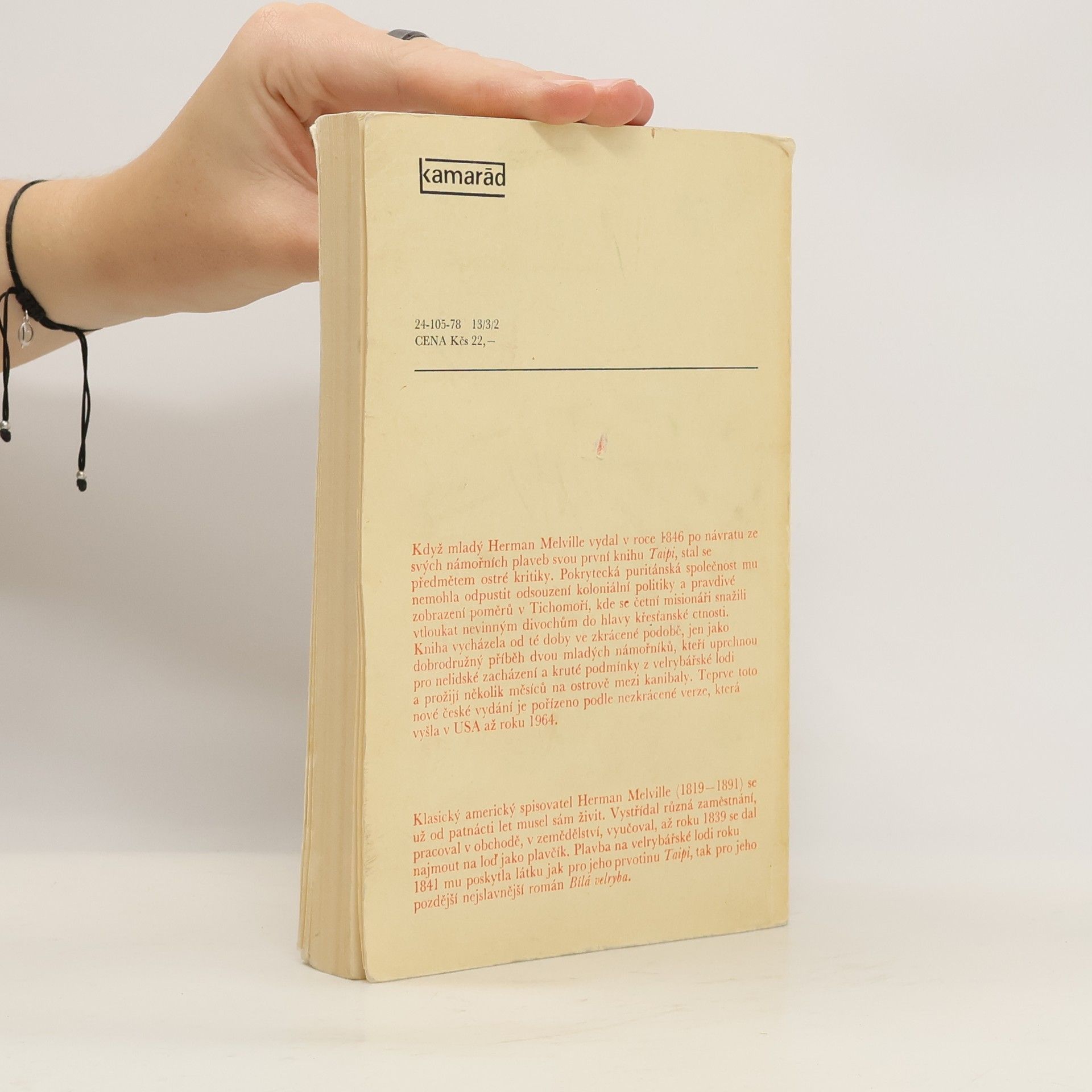 Když mladý Herman Melville vydal v roce 1846 po návratu ze svých námořních plaveb svou první knihu Taipi, stal se předmětem ostré kritiky. Pokrytecká puritánská společnost mu nemohla odpustit odsouzení koloniální politiky a pravdivé zobrazení poměrů v Tichomoří, kde se četní misionáři snažili vtloukat nevinným divochům do hlavy křesťanské ctnosti. Kniha vycházela od té doby ve zkrácené podobě, jen jako dobrodružný příběh dvou mladých námořníků, kteří uprchnou pro nelidské zacházení a kruté podmínky z velrybářské lodi a prožijí několik měsíců na ostrově mezi kanibaly. Teprve toto české vydání je pořízeno podle nezkrácené verze, která vyšla v USA až roku 1964. Vyšlo také pod názvem Ráj kanibalů.