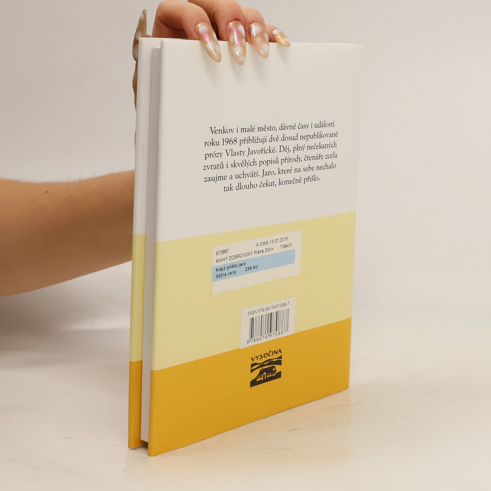 Venkov i malé město, dávné časy i události roku 1968 přibližují dvě dosud nepublikované prózy Vlasty Javořické. Děj, plný nečekaných zvratů i skvělých popisů přírody, čtenáře zcela zaujme a uchvátí. Jaro, které na sebe nechalo tak dlouho čekat, konečně přišlo. Dotisk r. 1998 májiné ISBN, což je chyba.