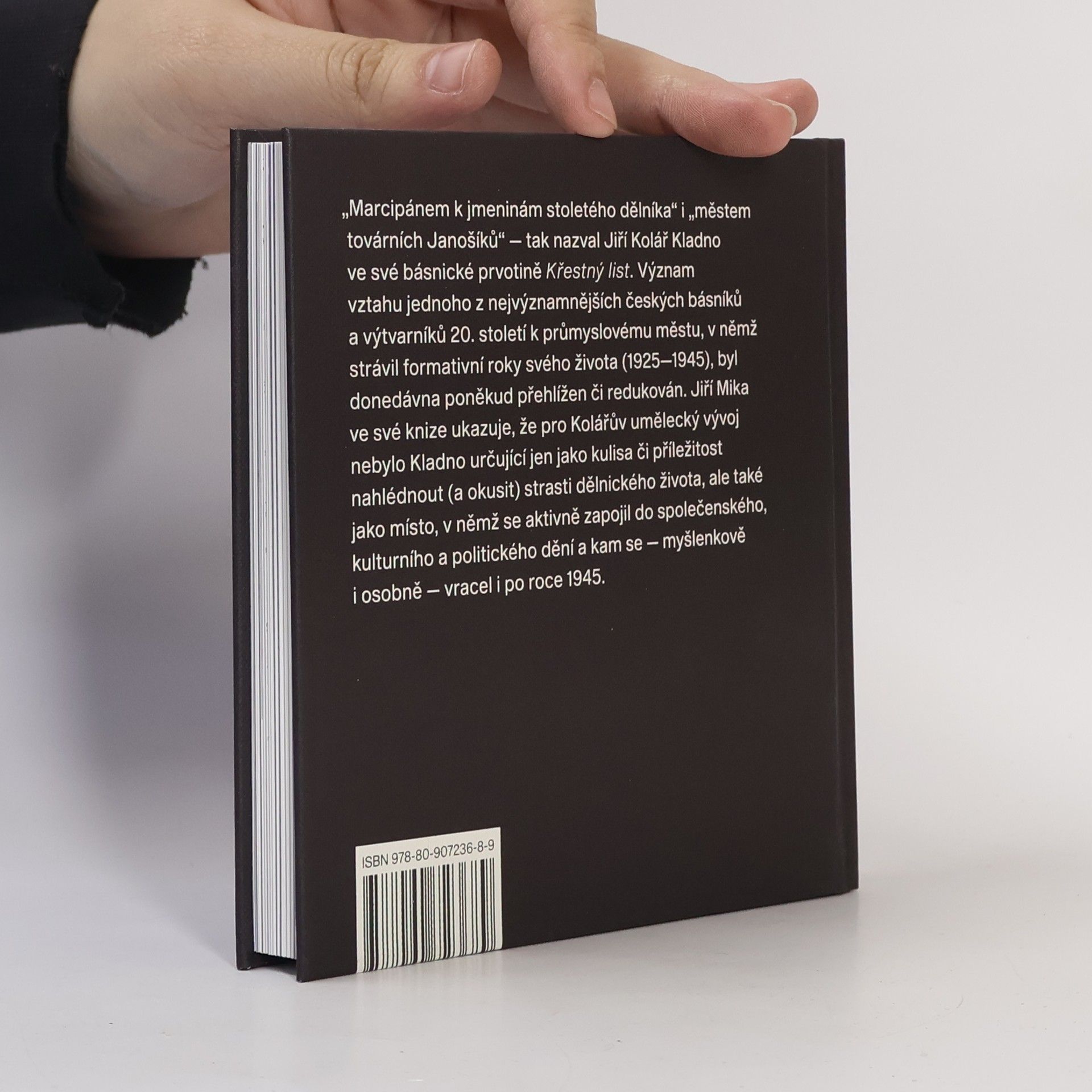 "Marcipánem k jmeninám stoletého dělníka" i "městem továrních Janošíků" - tak nazval Jiří Kolář Kladno ve své básnické prvotině Křestný list. Význam vztahu jednoho z nejvýznamnějších českých básníků a výtvarníků 20. století k průmyslovému městu, v němž strávil formativní roky svého života (1925-1945), byl donedávna poněkud přehlížen či redukován. Jiří Mika ve své knize ukazuje, že pro Kolářův umělecký vývoj nebylo Kladno určující jen jako kulisa či příležitost nahlédnout (a okusit) strasti dělnického života, ale také jako místo, v němž se aktivně zapojil do společenského, kulturního a politického dění a kam se - myšlenkově i osobně - vracel i po roce 1945.