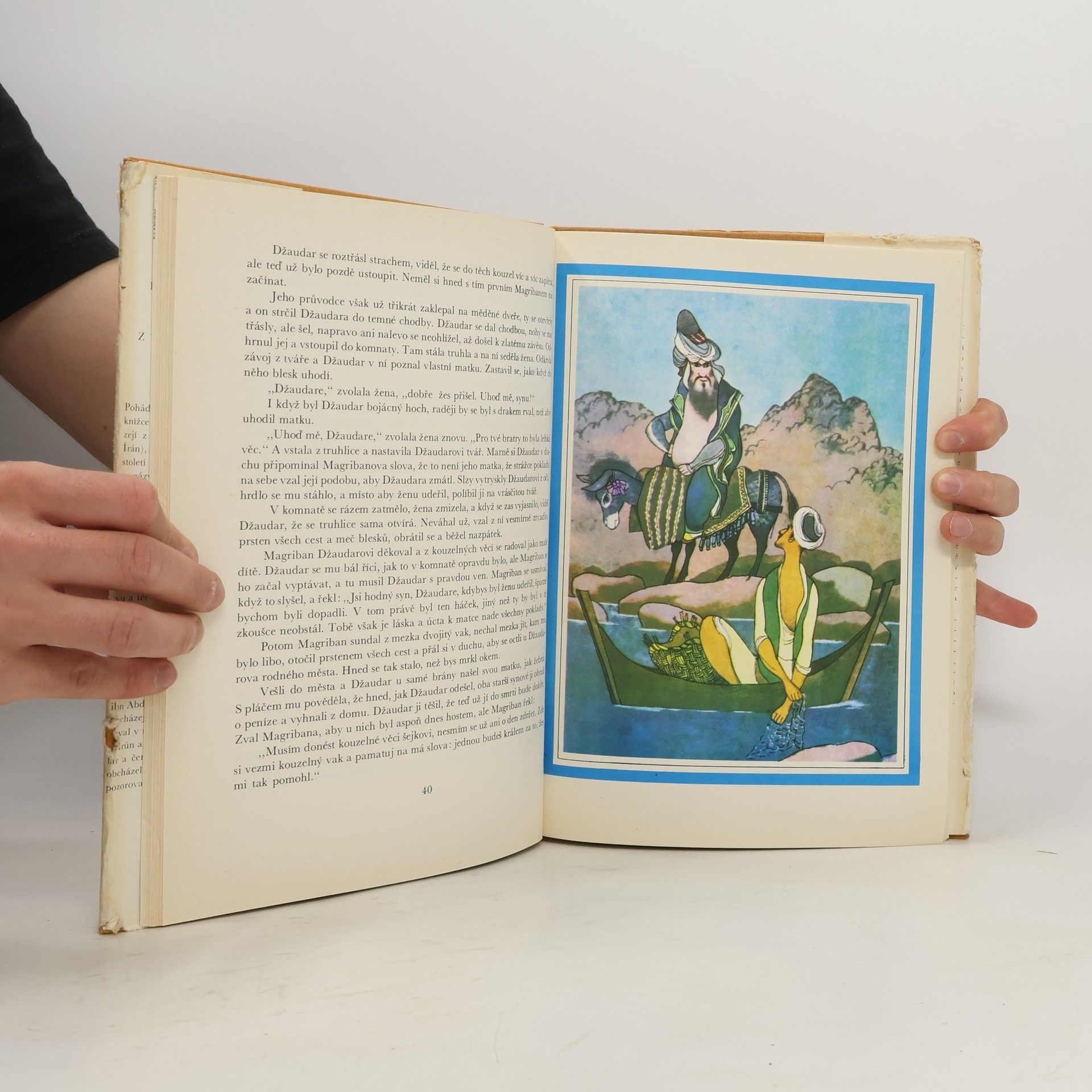 Výbor sedmi nejhezčích pohádek z Tisíce a jedné noci převyprávěných pro čtenáře od 6 let. (Pohádka o ebenovém koni, Dobrodružství Sindibáda Námořníka, Pohádka o Džaudarovi a jeho bratrech, Alí Baba a čtyřicet loupežníků, Pohádka o Abdalláhovi Zemském a Abdalláhovi Mořském, Pohádka o Abú Kírovi a Abú Sírovi, Aládín a kouzelná lampa). V bohaté fantazii probíhají rušné děje plné překvapivosti, vyjadřující dávné touhy prostých lidí po šťastném životě bez bídy a zla. Básník uvádí výbor půvabnou veršovanou pohádkou o Chytré Šahrazád a malíř vytvořil řadu působivých pohádkových ilustrací, plných barvité cizokrajnosti.