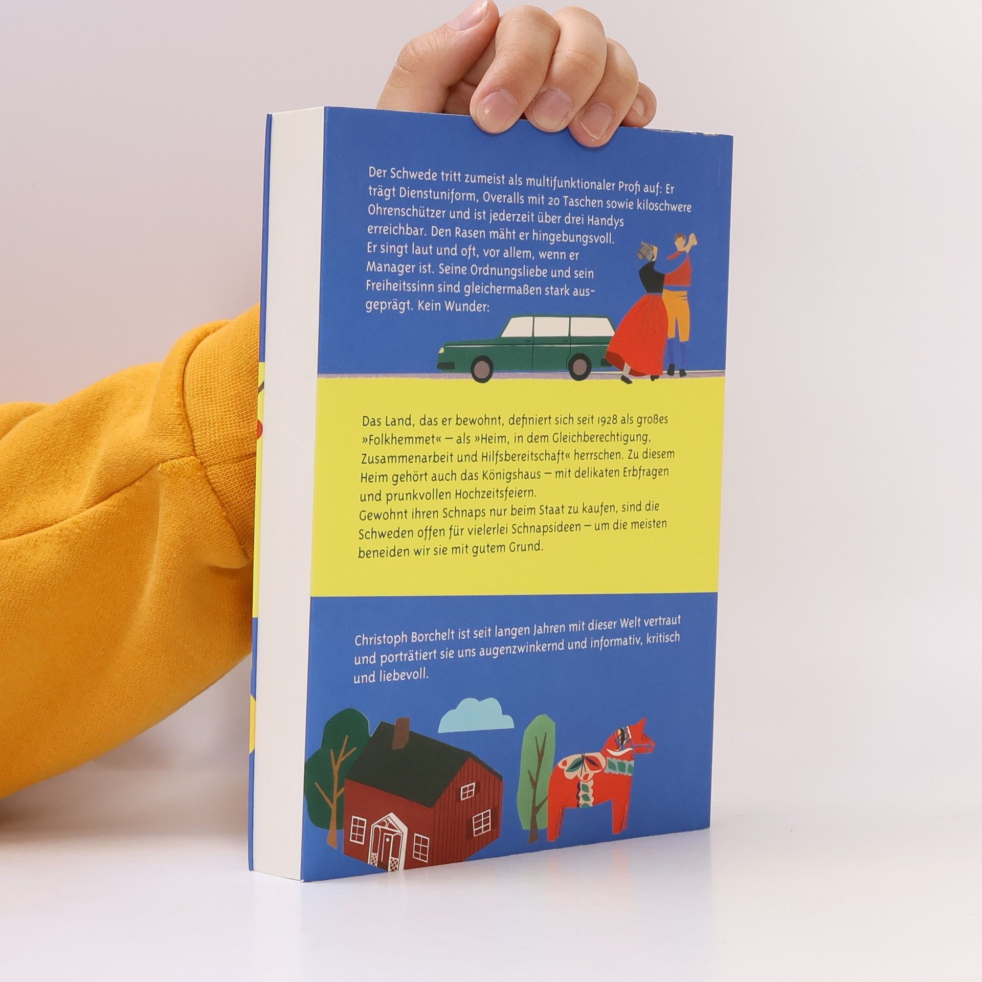 Willkommen im einzigen Land, wo Golf Breitensport ist und der Satz „Ich will Ihren Chef sprechen“ Gelächter hervorruft. Der Schwede agiert als multifunktionaler Profi: in Dienstuniform, mit Overalls und kiloschweren Ohrenschützern, stets über drei Handys erreichbar. Hingebungsvoll mäht er den Rasen und singt oft laut, besonders in seiner Rolle als Manager. Das Allemansrätt, das ungeschriebene Recht, überall kurzfristig Quartier zu beziehen, prägt ihn tief: Er würde nie auf einem einzigen Campingplatz verweilen und fährt mit dem Wohnwagen zum Brötchenholen. Sein Sinn für Ordnung und Freiheit ist stark ausgeprägt. Kein Wunder, dass das Land seit 1928 als großes „Folkshemmet“ gilt, ein Heim, in dem Gleichberechtigung und Hilfsbereitschaft herrschen. Schweden duzen sich, verwenden kurze Grußformeln und sprechen sich mit Vornamen an. Obwohl sie feiern, lieben und streiten wie andere, ist der Begriff „Privatleben“ ihnen weitgehend fremd, da Steuerverzeichnisse öffentlich einsehbar sind. Gewöhnt, ihren Schnaps nur beim Staat zu kaufen, sind die Schweden offen für viele Schnapsideen, um die andere beneiden. Christoph Borchelt, vertraut mit dieser Welt, porträtiert sie augenzwinkernd, informativ, kritisch und liebevoll.