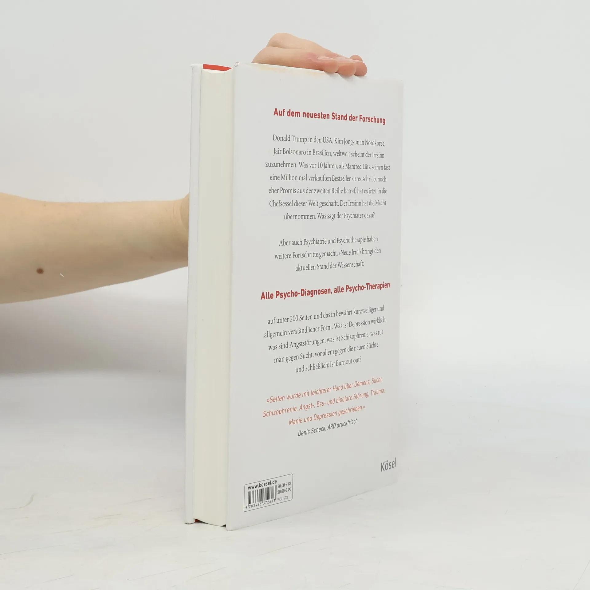 Das aktuelle Buch zur Weltlage! Donald Trump in den USA, Kim Jong Un in Nordkorea, Jair Bolsonaro in Brasilien, weltweit scheint der Irrsinn zuzunehmen. Kann man etwas dagegen tun und sind die überhaupt wirklich verrückt? Was vor zehn Jahren noch eher Promis aus der zweiten Reihe betraf, hat es jetzt in die Chefsessel dieser Welt geschafft. Da war eine komplette Aktualisierung unvermeidlich. Der Irrsinn hat die Macht übernommen. Was sagt ein Psychiater dazu? Aber auch Psychiatrie und Psychotherapie haben weitere Fortschritte gemacht. So bringt »Neue Irre!« den aktuellen Stand der Wissenschaft: Alle Psycho-Diagnosen, alle Psycho-Therapien und das in bewährt kurzweiliger und allgemeinverständlicher Form. Was ist Depression wirklich, was sind Angststörungen, was ist Schizophrenie, was tut man gegen Sucht, vor allem gegen die neuen Süchte und schließlich: Ist Burnout out? Der renommierte Psychiater und Bestseller-Autor Manfred Lütz bringt Licht ins Dunkel des allgemeinen Wahnsinns.