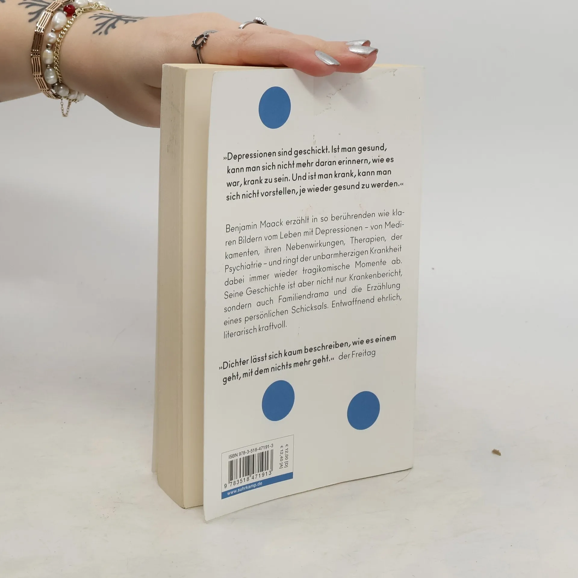 »Als ich wieder gesund bin, will ich Friederike erklären, wie Depressionen sind. Aber Depressionen sind geschickt. Ist man gesund, kann man sich nicht mehr daran erinnern, wie es war, krank zu sein. Und ist man krank, kann man sich nicht vorstellen, je wieder gesund zu werden.« Wenn das noch geht, kann es nicht so schlimm sein ist ein entwaffnend ehrliches Zeugnis vom Leben mit Depressionen. Benjamin Maack ringt der unbarmherzigen Krankheit tragikomische Momente ab und erzählt von ihr in so berührenden wie klaren Bildern. Seine Geschichte ist aber nicht nur Psychiatrie- und Krankenbericht, sondern auch Familiendrama und die Erzählung eines persönlichen Schicksals. Ein schonungsloses, literarisch kraftvolles Buch.