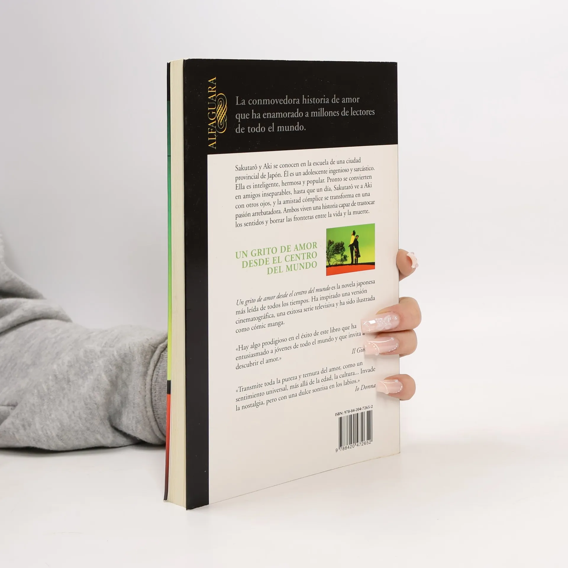 La conmovedora historia de amor que ha enamorado a millones de lectores de todo el mundo. Sakutarô y Aki se conocen en la escuela de una ciudad provincial de Japón. Él es un adolescente ingenioso y algo sarcástico. Ella es inteligente, hermosa y popular. Pronto se convierten en amigos inseparables, hasta que un día, por primera vez, Sakutarô ve a Aki con otros ojos, y la amistad cómplice se transforma ineludiblemente en una pasión arrebatadora. Ambos viven una historia capaz de trastocar los sentidos y borrar las fronteras entre la vida y la muerte. Un grito de amor desde el centro del mundo es la novela japonesa más leída de todos los tiempos. Ha inspirado una versión cinematográfica, una exitosa serie televisiva y ha sido ilustrada como cómic manga. «Hay algo prodigioso en el éxito de este libro que ha entusiasmado a jóvenes de todo el mundo y que invita a descubrir el amor.» Il Giornale «Transmite toda la pureza y ternura del amor, como un sentimiento universal, más allá de la edad, la cultura… Tras leerlo es imposible no recordar el primer amor. Invade la nostalgia, pero con una dulce sonrisa en los labios.» Io Donna