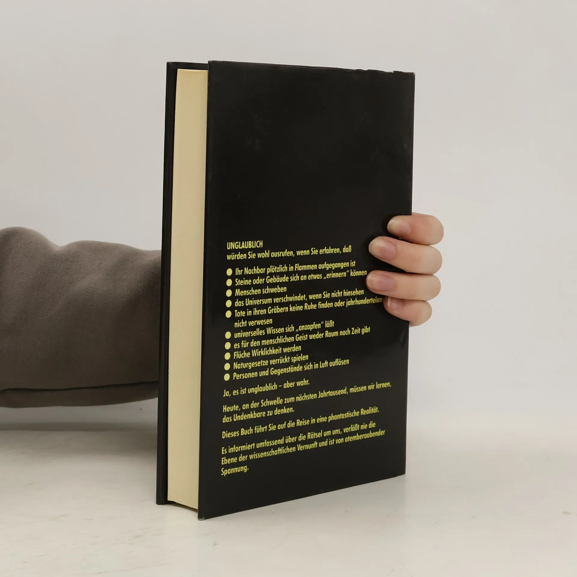 UNGLAUBLICH würden Sie wohl ausrufen, wenn Sie erfahren, dass- Ihr Nachbar plötzlich in Flammen aufgegangen ist- Steine und Gebäude sich an etwas "erinnern" können- Menschen schweben- das Universum verschwindet, wenn Sie nicht hinsehen- Tote in Ihren Gräbern keine Ruhe finden und jahrhundertelang nicht verwesen- universelles Wissen sich "anzapfen" läßt- es für den menschlichen Geist weder Raum noch Zeit gibt- Flüche Wirklichkiet werden- Naturgesetze verrückt spielen- Personen und Gegenstände sich in Luft auflösenJa, es ist unglaublich - aber wahr.Heute, an der Schwelle zum nächsten Jahrhundert, müssen wir lernen, das Undenkbare zu denken.Dieses Buch führt Sie auf die Reise in eine phantastische Realität.Es informiert umfassend über die Rätsel um uns, verläßt nie die Ebene der wissenschaftlichen Vernunft und ist von atemberaubender Spannung.