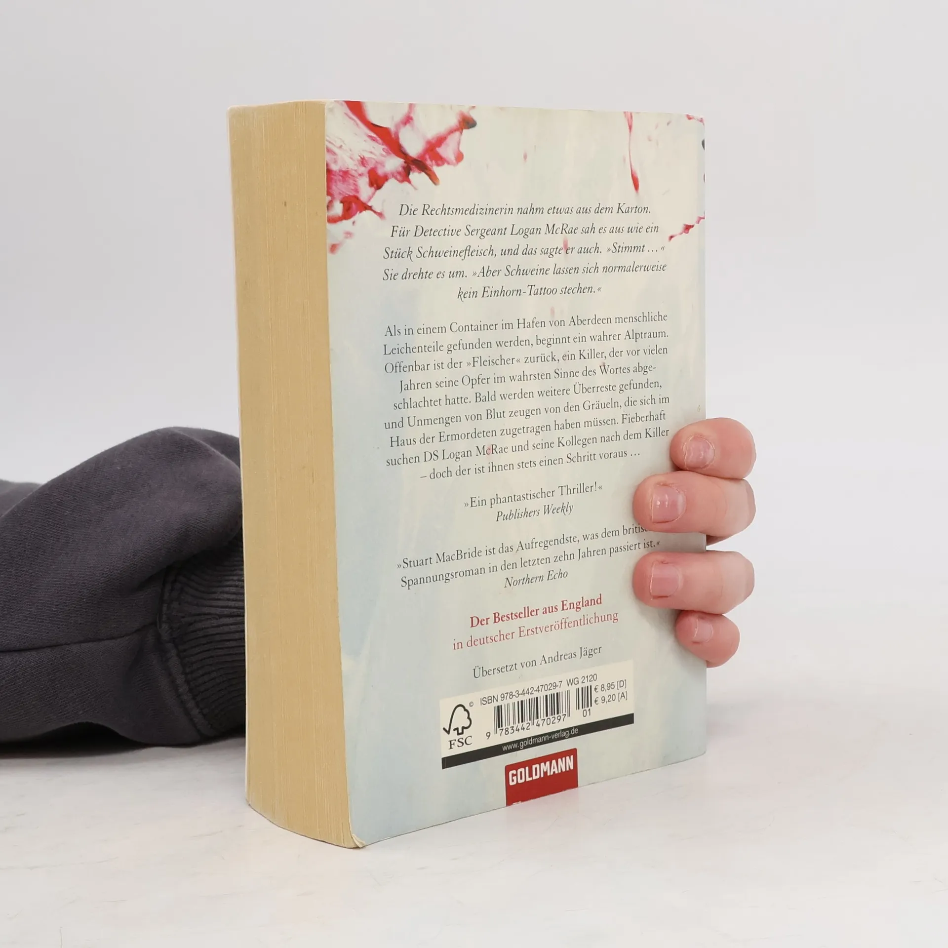 Ein wahrer Höllentrip – für alle, die ihre Thriller blutig mögen. Sehr blutig Als in einem Container im Hafen von Aberdeen menschliche Leichenteile in den Fleischvorräten für eine Bohrinsel gefunden werden, beginnt ein wahrer Alptraum. Offenbar ist der „Fleischer“ zurück, ein Killer, der vor vielen Jahren seine Opfer im wahrsten Sinne des Wortes abgeschlachtet hatte. Ken Wiseman war damals zwar gefasst und verurteilt worden, ist seit einiger Zeit aber wieder in Freiheit. Bald werden weitere Leichenteile gefunden, und von einigen offenbar verschleppten Opfern fehlt jede Spur. Nur Unmengen von Blut zeugen von den unvorstellbaren Gräueln, die sich in ihrem Haus zugetragen haben müssen. Fieberhaft suchen Detective Logan McRae und seine Kollegen nach dem „Fleischer“ – doch der ist ihnen stets einen Schritt voraus ...