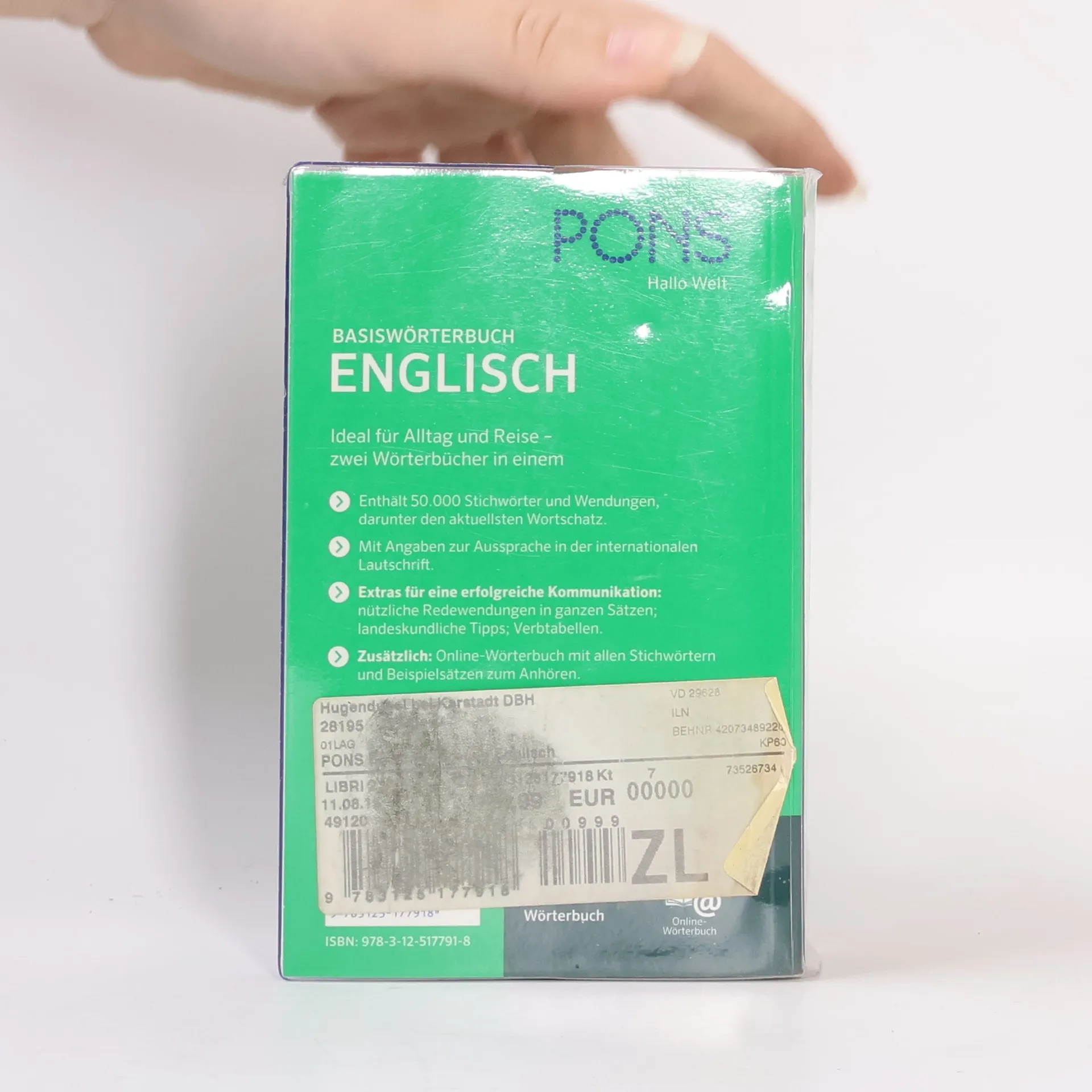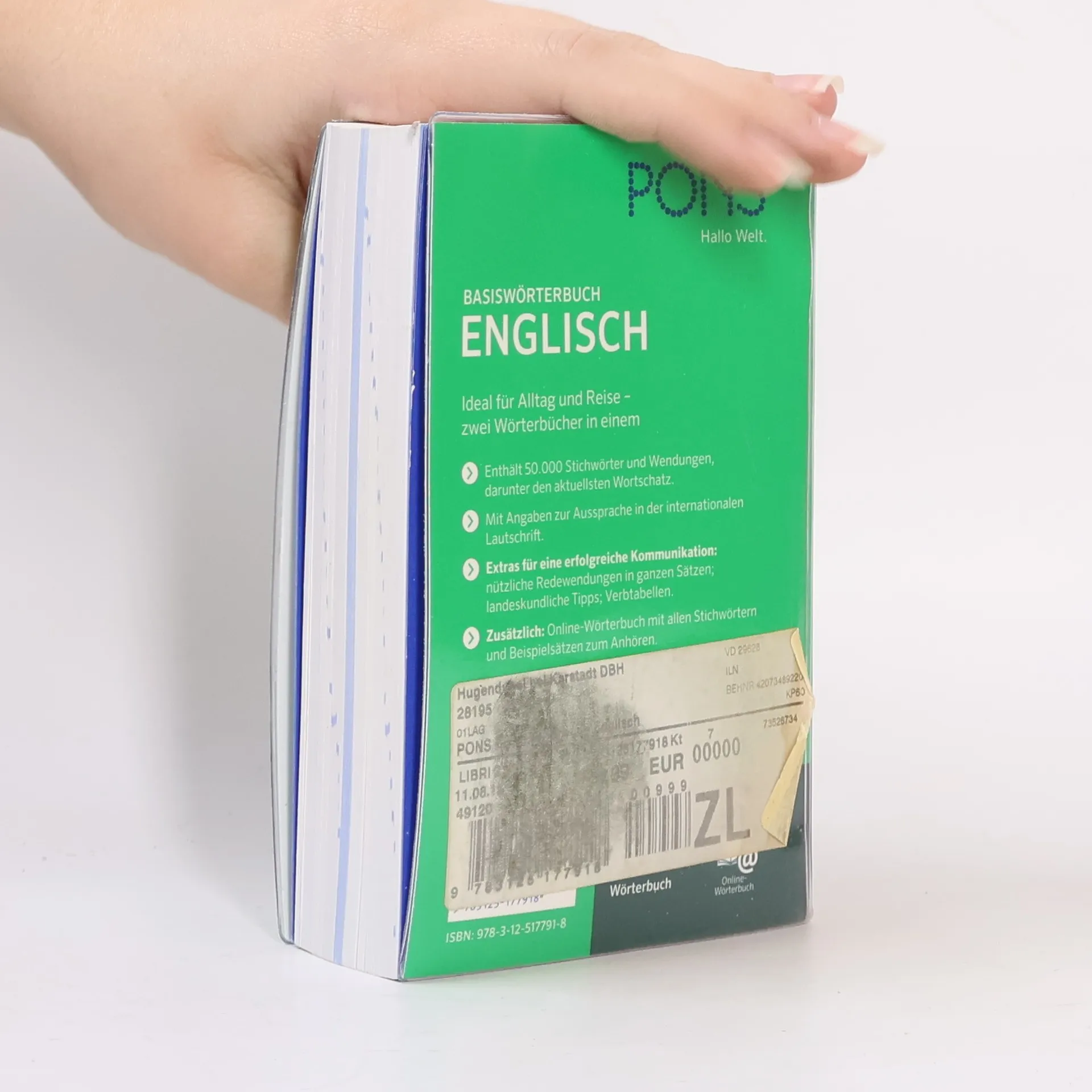 „Ideal für Alltag und Reise - zwei Wörterbücher in einem - Enthält 50.000 Stichwörter und Wendungen, darunter den aktuellsten Wortschatz. - Mit Angaben zur Aussprache in der internationalen Lautschrift. - Extras für eine erfolgreiche Kommunikation: nützliche Redewendungen in ganzen Sätzen; landeskundliche Tipps; Verbtabellen. - Zusätzlich: Online-Wörterbuch mit allen Stichwörtern und Beispielsätzen zum Anhören. Englisch - Deutsch und Deutsch - Englisch Für alle, die ein handliches Nachschlagewerk für den Alltag und für unterwegs brauchen. Im praktischen flexiblen Format mit transparentem Schutzumschlag.“