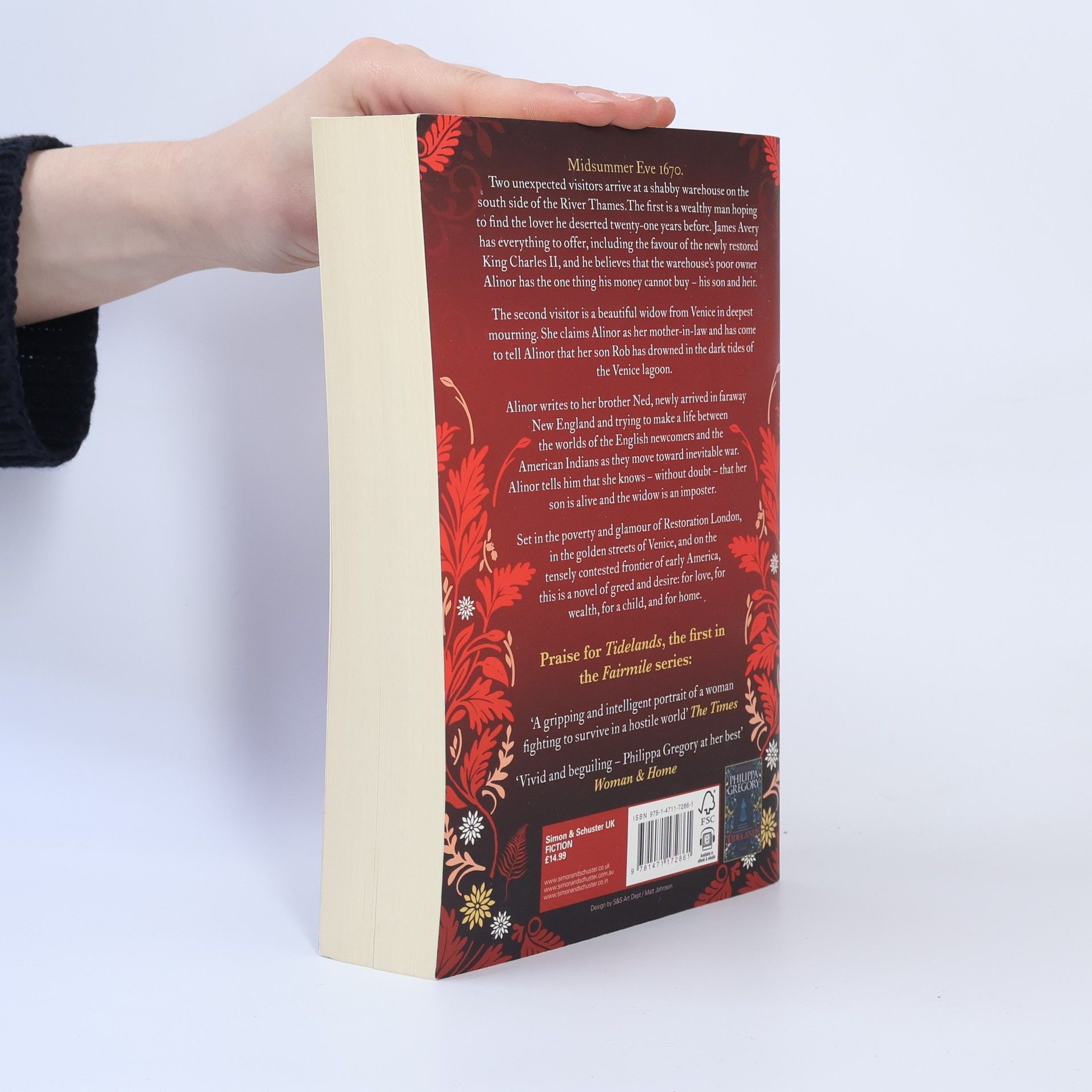 Number One bestselling author Philippa Gregory's new historical novel tracks the rise of the Tidelands family in London, Venice and New England. Praise for Tidelands, the first in the Fairmile series: ‘A gripping and intelligent portrait of a woman fighting to survive in a hostile world’ The Times ‘The first in a planned series . . . The author crafts her material with effortless ease. Her grasp of social mores is brilliant, the love story rings true and the research is, as ever, of the highest calibre’ Elizabeth Buchan, Daily Mail ‘Vivid and beguiling – Philippa Gregory at her best’ W oman & Home ‘A compelling novel that shines a light on the struggles of 17th century women’ Daily Mirror ‘ The novel's power lies in Gregory's evocative portrayal of the tidelands and the everyday lives of those who are bound to them’ Sunday Express ‘Philippa Gregory returns with an English Civil War novel that excels in everything she does best. Historical events are written with breathless immediacy, keeping the reader enthralled even if they know the outcome’ Alys Key , The i ‘If this novel is the first sign of what's to come then readers are in for a treat’ Emma Lee-Potter, Daily Express
