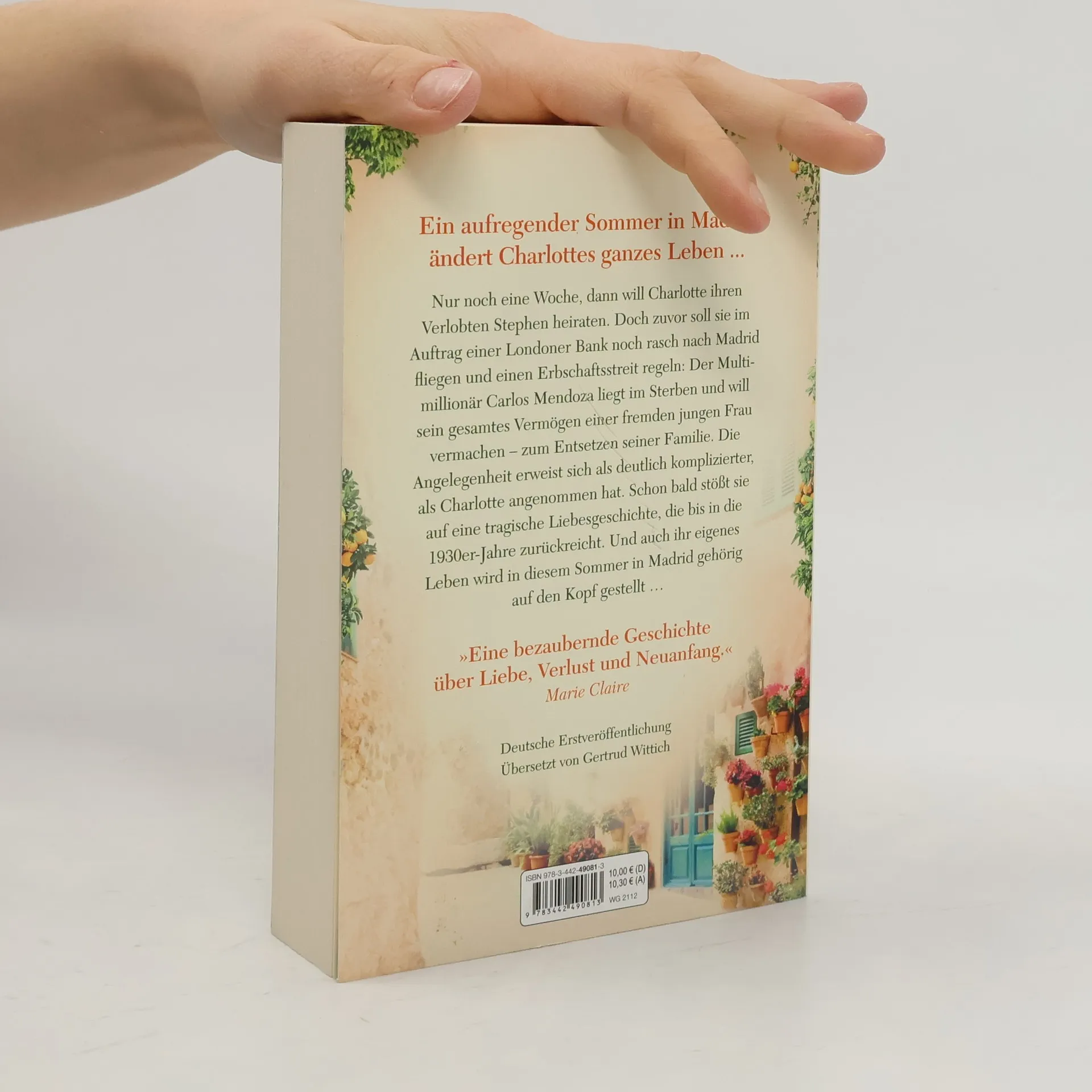 »Eine bezaubernde Geschichte über Liebe, Verlust und Neuanfang.« Marie Claire Nur noch eine Woche, dann will Charlotte Fairfax ihren Verlobten Stephen heiraten. Doch zuvor soll sie im Auftrag einer Londoner Bank noch rasch nach Madrid fliegen und einen Erbschaftsstreit regeln: Der Multimillionär Carlos Mendoza liegt im Sterben und will sein gesamtes Vermögen einer fremden jungen Frau vermachen – zum Entsetzen seiner Familie. Die Angelegenheit erweist sich als deutlich komplizierter, als Charlotte angenommen hat. Schon bald stößt sie auf eine tragische Liebesgeschichte, die bis in die 1930er-Jahre zurückreicht. Und auch ihr eigenes Leben wird in diesem Sommer in Madrid gehörig auf den Kopf gestellt …
