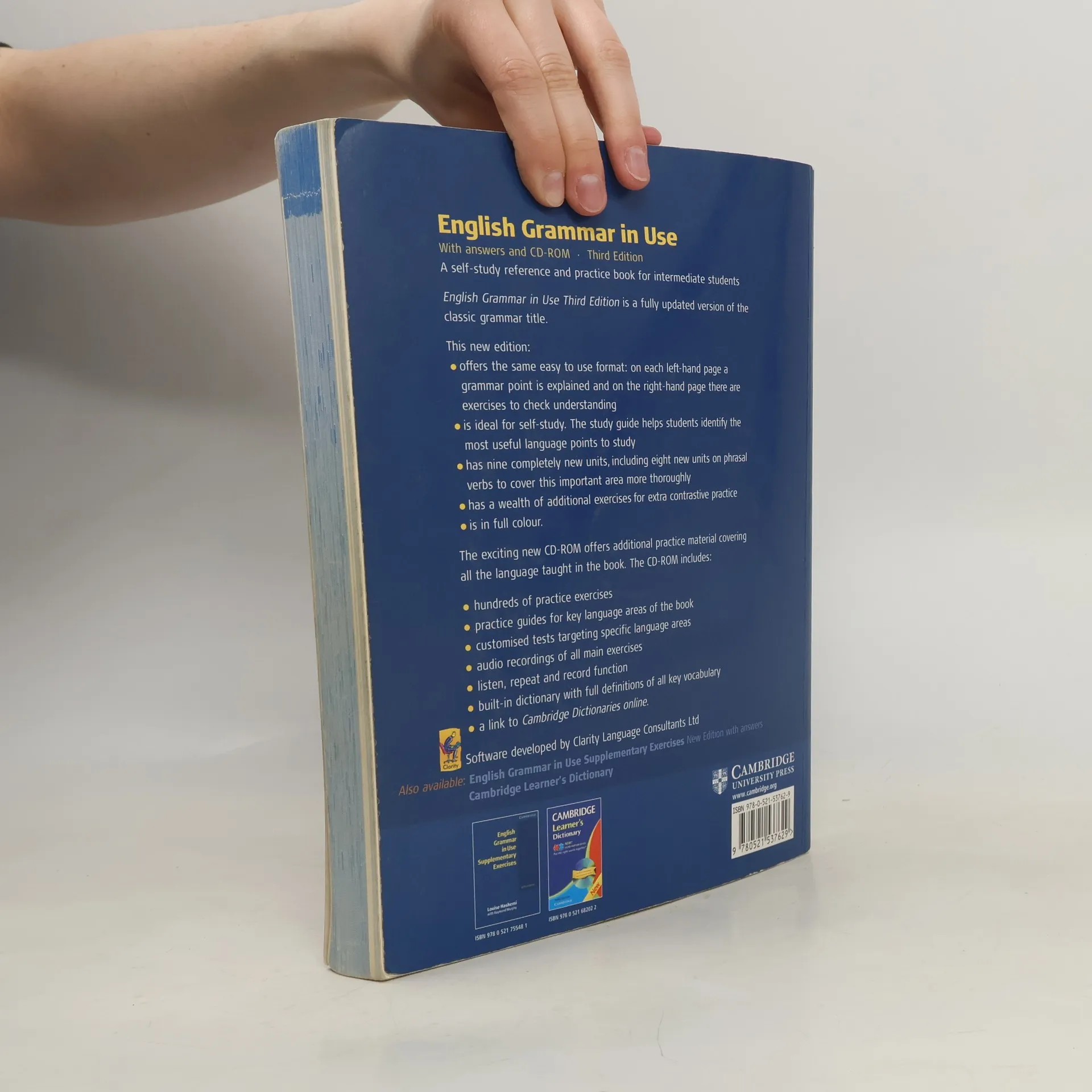 English Grammar in Use Third edition is a fully updated version of the classic grammar title. It retains all the key features of clarity and accessibility that have made this book so popular with students and teachers alike. This edition, with answers and CD-ROM, is ideal for self-study. The CD-ROM includes hundreds of interactive exercises to reinforce the language learned in the book.
