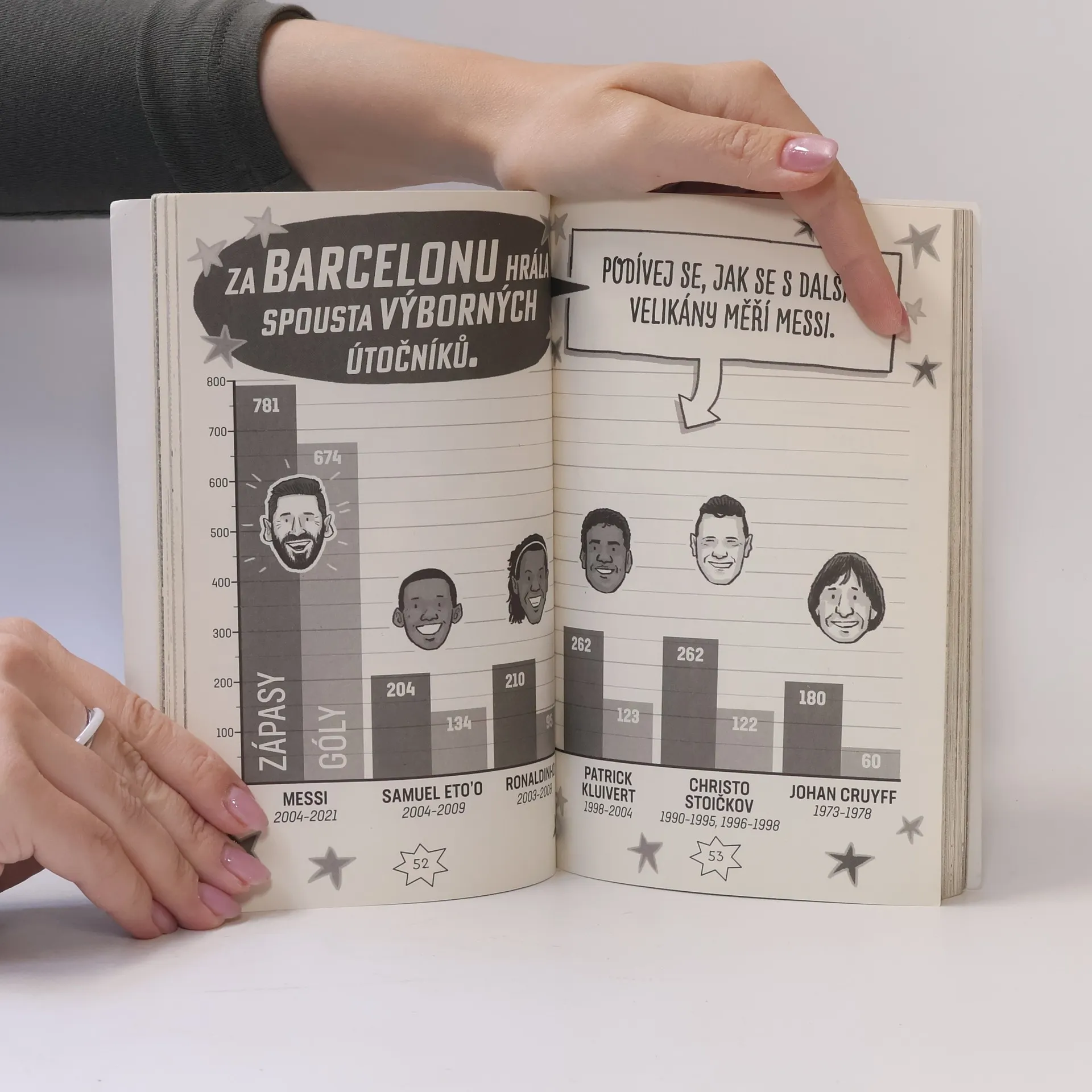 Přečti si, jak se Lionel Messi po odchodu z Argentiny stal legendou FC Barcelony, sedmkrát vyhrál Zlatý míč a vysloužil si přízvisko „Nejlepší fotbalista všech dob". Kolik úsilí a dřiny ho to stálo? A proč je nejlepší? Třeba proto, že je malý a rychlý - dovede utéct obráncům, vždycky pošle spoluhráčům dokonalý pas, umí si vytvořit dokonalý prostor a vidí každou šanci. Ale je toho mnohem víc! Přečti si tenhle skvělý komiks a budeš specialista na všechno, co se Messiho týká!