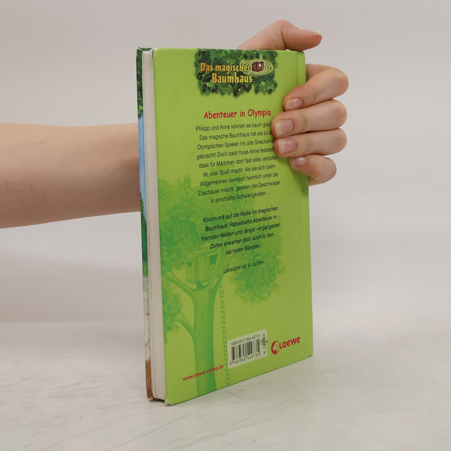 Das Buch ist bei deiner Buchhandlung vor Ort und bei vielen Online-Buchshops erhältlich! + Bücher, die Kinder gerne lesen wollen + Beliebte Themen: Abenteuer, Tiere, fremde Länder und Antike + Hochwertiges Hardcover + Mit vielen Illustrationen + Bereits über 10 Millionen verkaufte Bücher der Baumhaus-Reihe + Ausgewogenes Text-Bild-Verhältnis + Große Schrift + Kurze Kapitel + Philipp und Anne können es kaum glauben: Das magische Baumhaus hat sie zu den Olympischen Spielen ins alte Griechenland gebracht! Doch bald muss Anne feststellen, dass für Mädchen dort fast alles verboten ist, was Spaß macht. Als sie sich beim Wagenrennen dennoch heimlich unter die Zuschauer mischt, geraten die Geschwister in ernsthafte Schwierigkeiten ... Komm mit auf die Reise im magischen Baumhaus! Rätselhafte Abenteuer in fremden Welten und längst vergangenen Zeiten erwarten dich auch in den nächsten Bänden. Die beliebte Kinderbuch-Reihe von Bestsellerautorin Mary Pope Osborne! Die Geschwister Anne und Philipp reisen mit dem magischen Baumhaus durch die Zeit. Sie erleben spannende Abenteuer, entdecken ferne Länder und lernen viele berühmte Persönlichkeiten kennen. Mehr Infos zur Reihe und tolle Extras unter: www. MagischesBaumhaus. de