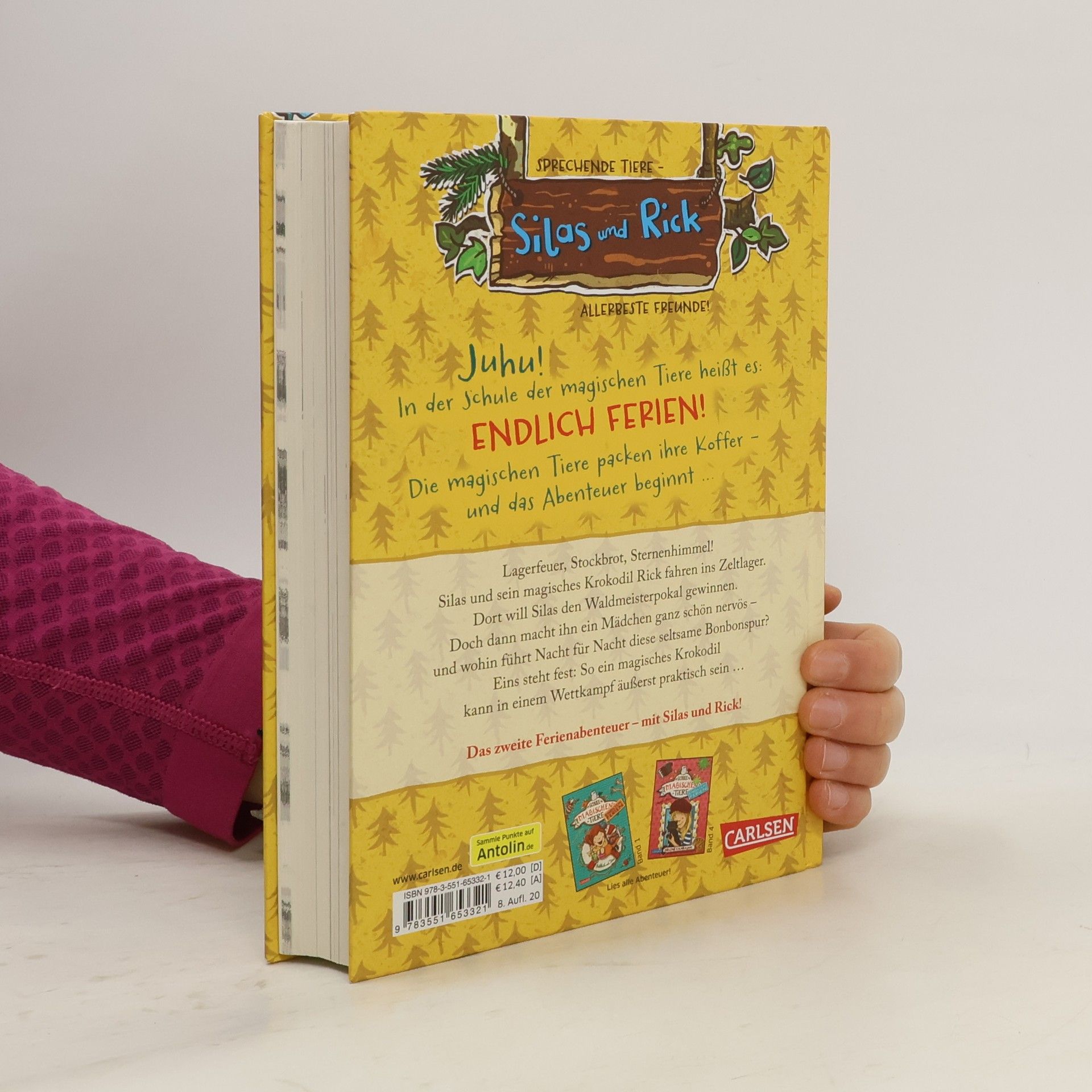 Jetzt kostenlos herunterladen – die App zur Serie! *** Auf in die Ferien - mit einem magischen, sprechenden Tier! BAND 2: Lagerfeuer, Stockbrot, Sternenhimmel! Silas und sein magisches Krokodil Rick fahren ins Zeltlager. Dort will Silas den Waldmeisterpokal gewinnen. Doch dann macht ihn ein Mädchen ganz schön nervös – und wohin führt Nacht für Nacht diese seltsame Bonbonspur? Eins steht fest: So ein magisches Krokodil kann in einem Wettkampf äußerst praktisch sein … DIE SCHULE DER MAGISCHEN TIERE - Endlich Ferien: In der Schule der magischen Tiere heißt es: Endlich Ferien! Die magischen Tiere packen ihre Koffer – und das Abenteuer beginnt … Ein neuer spannender Ferienkrimi in kurzen Kapiteln - mit echtem magischem Tier. Viel Spaß mit dem zweiten Ferienabenteuer der Bestseller-Reihe!
