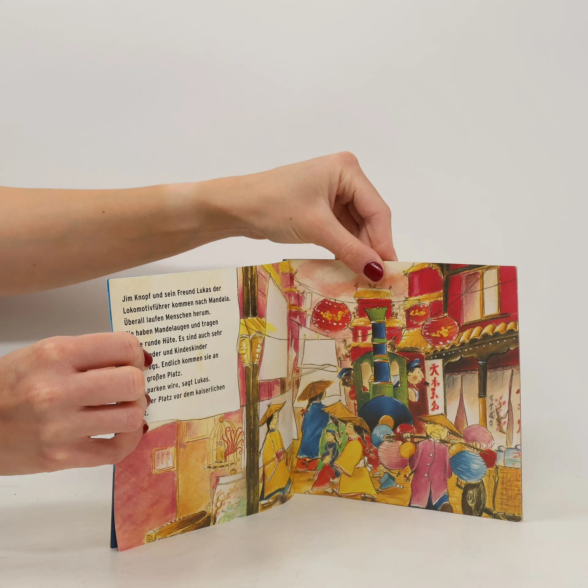 Ein Abenteuer mit Jim Knopf und Lukas dem Lokomotivführer, Bilderbuch für Kinder ab 3 Jahren. Jim Knopf ist bis über beide Ohren verliebt – in Prinzessin Li Si! Sie ist die Tochter des Kaisers von Mandala. Vor allem ihr bezauberndes Lächeln hat es Jim angetan. Nur dumm, dass Jim und sein Freund Lukas der Lokomotivführer nicht in den Palast gelassen werden. Da begegnen sie dem kleinen Ping Pong. Er ist sehr gescheit und weiß immer Rat. Ob er ihnen helfen kann?