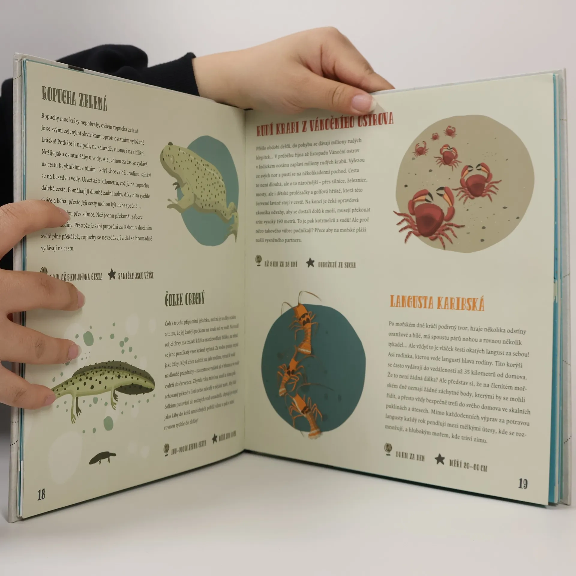 Vzhůru za dobrodružstvím a ještě dál! Vydejte se na cesty se zvířaty Některá zvířata se za celý život nepodívají dál než za humna, ale jiná procestují kontinenty… Třeba takový rybák dlouhoocasý, malý pták s červeným zobáčkem a nožičkami, každý rok obletí celou zeměkouli! A coteprve kareta obrovská! Elegantně si pluje skrz moře a oceány, aby se podívala na místo, kde se kdysi narodila. Právě tam a nikde jinde naklade kulatá bílá vajíčka. Ale víte, proč putují brouk hovnivál, stáda afrických slonů nebo třeba sob?