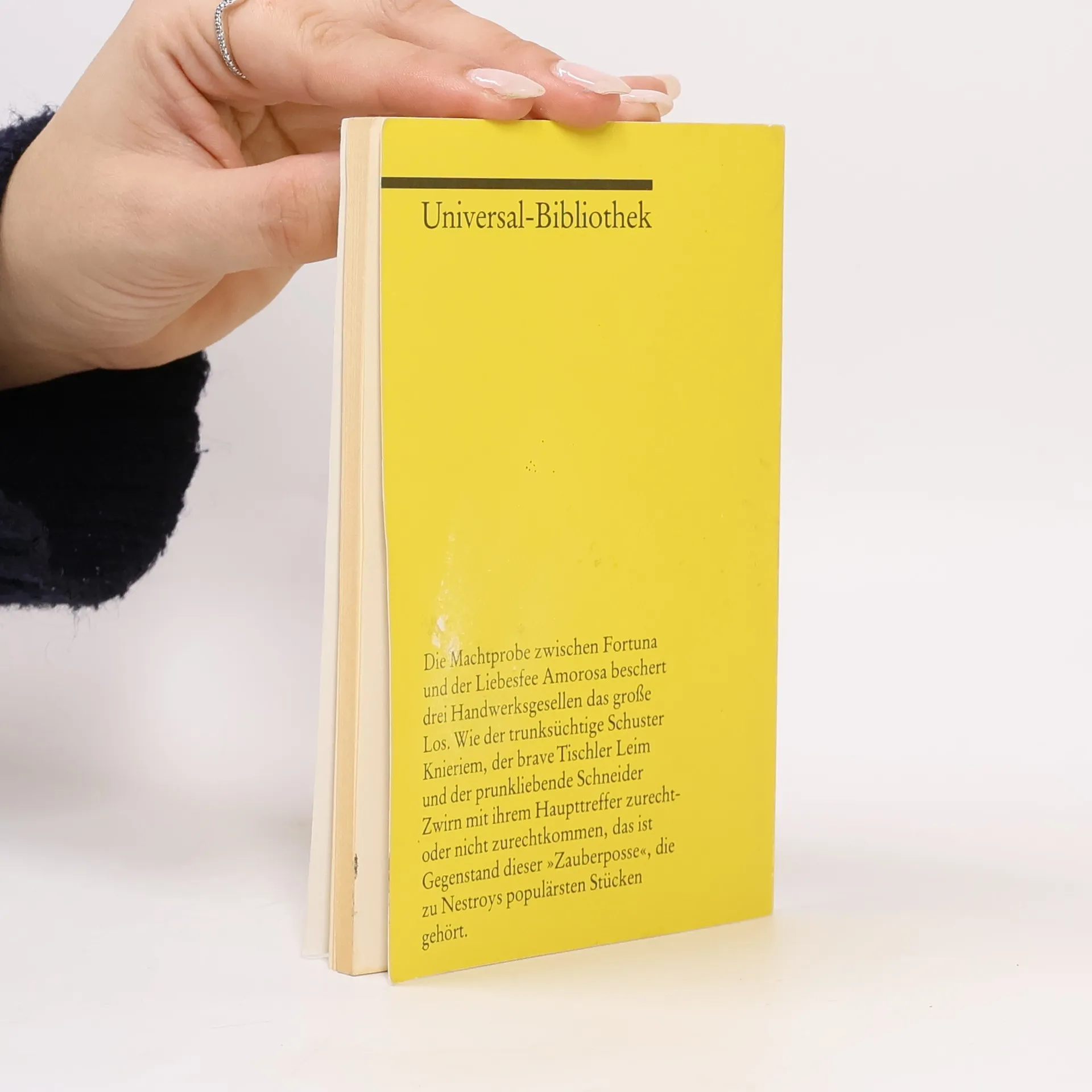 Die Machtprobe zwischen Fortuna und der Liebesfee Amorosa beschert drei Handwerksgesellen das große Los. Wie der trunksüchtige Schuster Knieriem, der brave Tischler Leim und der prunkliebende Schneider Zwirn mit ihrem Haupttreffer zurecht- oder nicht zurechtkommen, das ist Gegenstand dieser »Zauberposse«, die zu Nestroys populärsten Stücken gehört.
