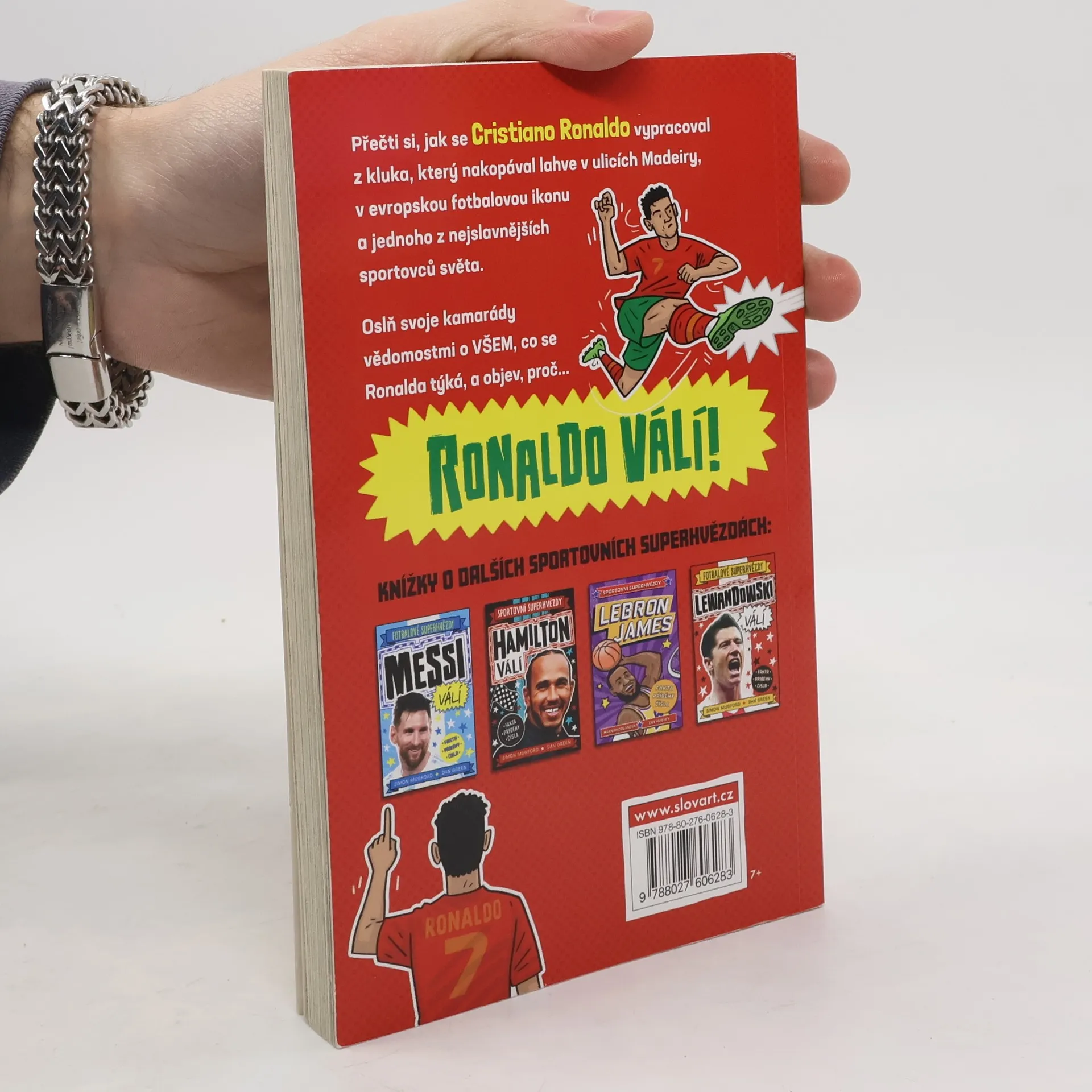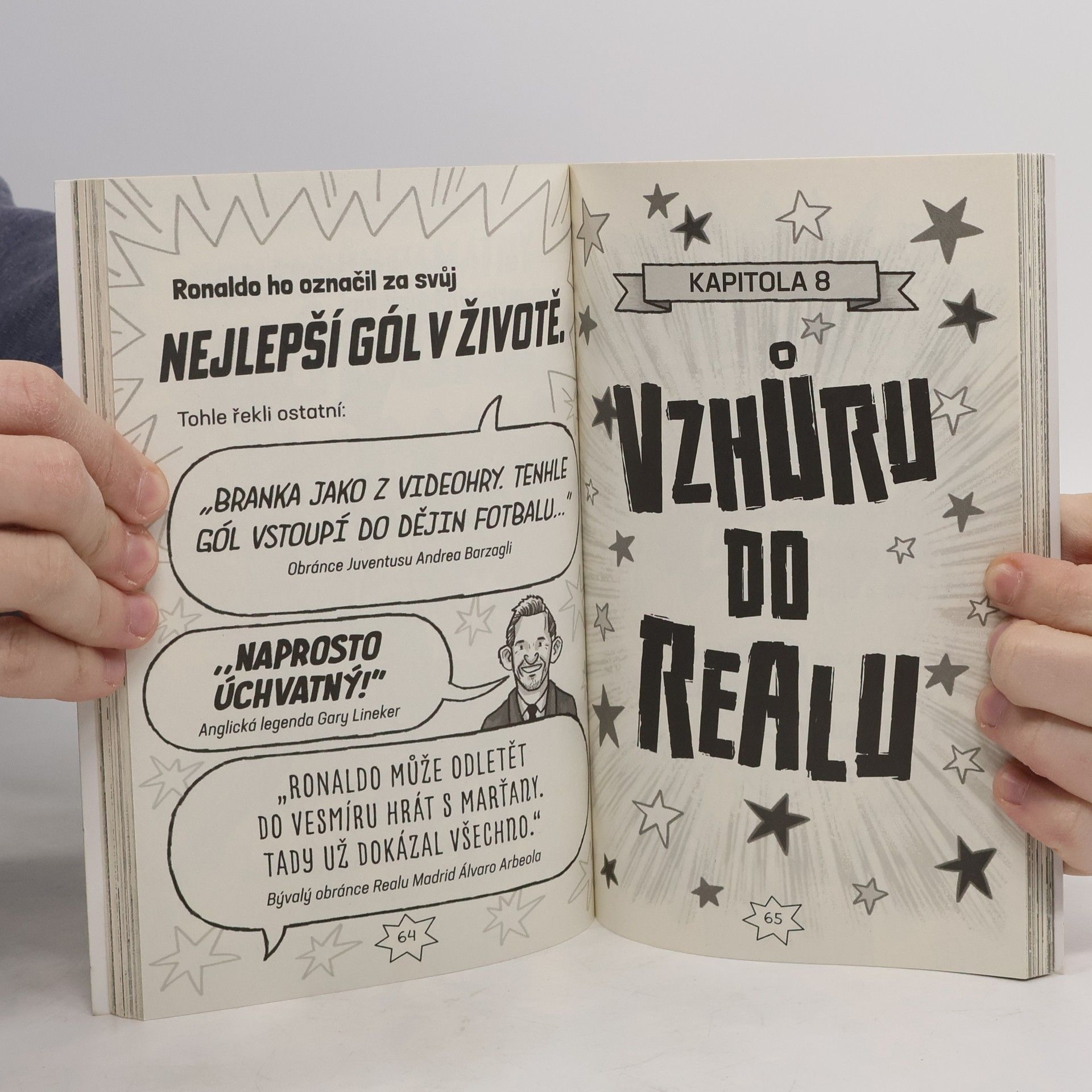 Přečti si, jak se Cristiano Ronaldo vypracoval z kluka, co nakopával v ulicích Madeiry plastové láhve v evropskou fotbalovou ikonu a jednoho z nejslavnějších sportovců světa. Čím je tak mimořádný? Třeba tím, že je jedním z nejrychlejších hráčů na hřišti. Je taky machr na patičky, kopání bodlem a nejrůznější kličky. Snadno vyskočí do výšky a skóruje hlavičkou a hlavně… dává spoustu gólů! Přečti si tenhle skvělý komiks a oslň kamarády vědomostmi o všem, co se Ronalda týká.