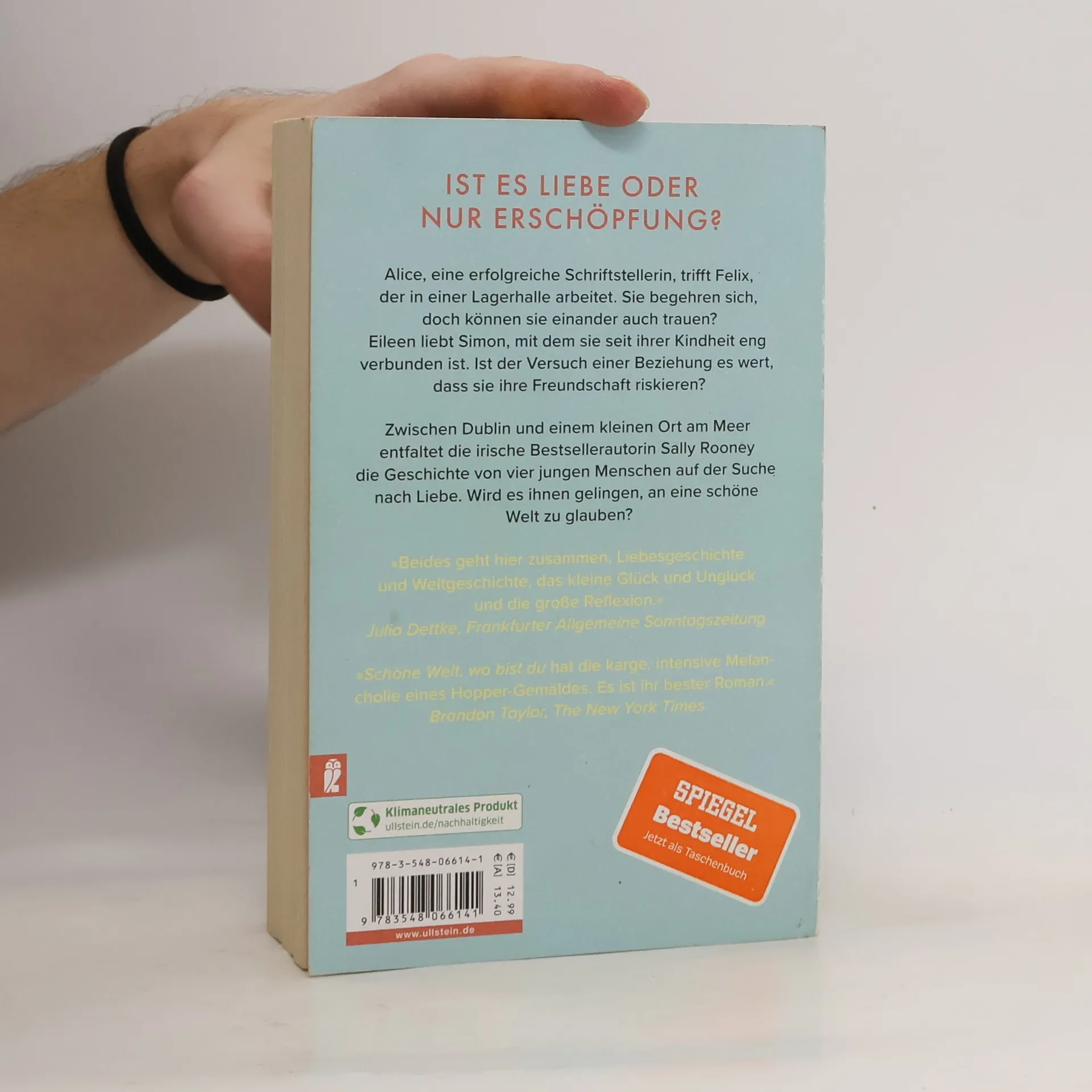 »Schöne Welt, wo bist du hat die karge, intensive Melancholie eines Hopper-Gemäldes. Ihr bester Roman.« Brandon Taylor, The New York Times Alice trifft Felix. Sie ist eine erfolgreiche Schriftstellerin, er arbeitet entfremdet in einer Lagerhalle. Sie begehren einander, doch können sie einander auch trauen? Alices beste Freundin Eileen hat eine schmerzvolle Trennung hinter sich und fühlt sich aufs Neue zu Simon hingezogen, mit dem sie seit ihrer Kindheit eng verbunden ist. Sie lieben sich, doch ist der Versuch einer Beziehung den Verlust ihrer Freundschaft wert? Zwischen Dublin und einem kleinen Ort an der irischen Küste entfaltet Sally Rooney eine Geschichte von vier jungen Menschen, die sich nahe sind, die einander verletzen, die sich austauschen: über Sex, über Ungleichheit und was sie mit Beziehungen macht, über die Welt, in der sie leben. Schöne Welt, wo bist du ist eine universelle Geschichte über den Raum zwischen Alleinsein und Einsamkeit und über die Freiheit, sein Leben mit anderen zu teilen – überwältigend klug, voller Klarheit und Trost.