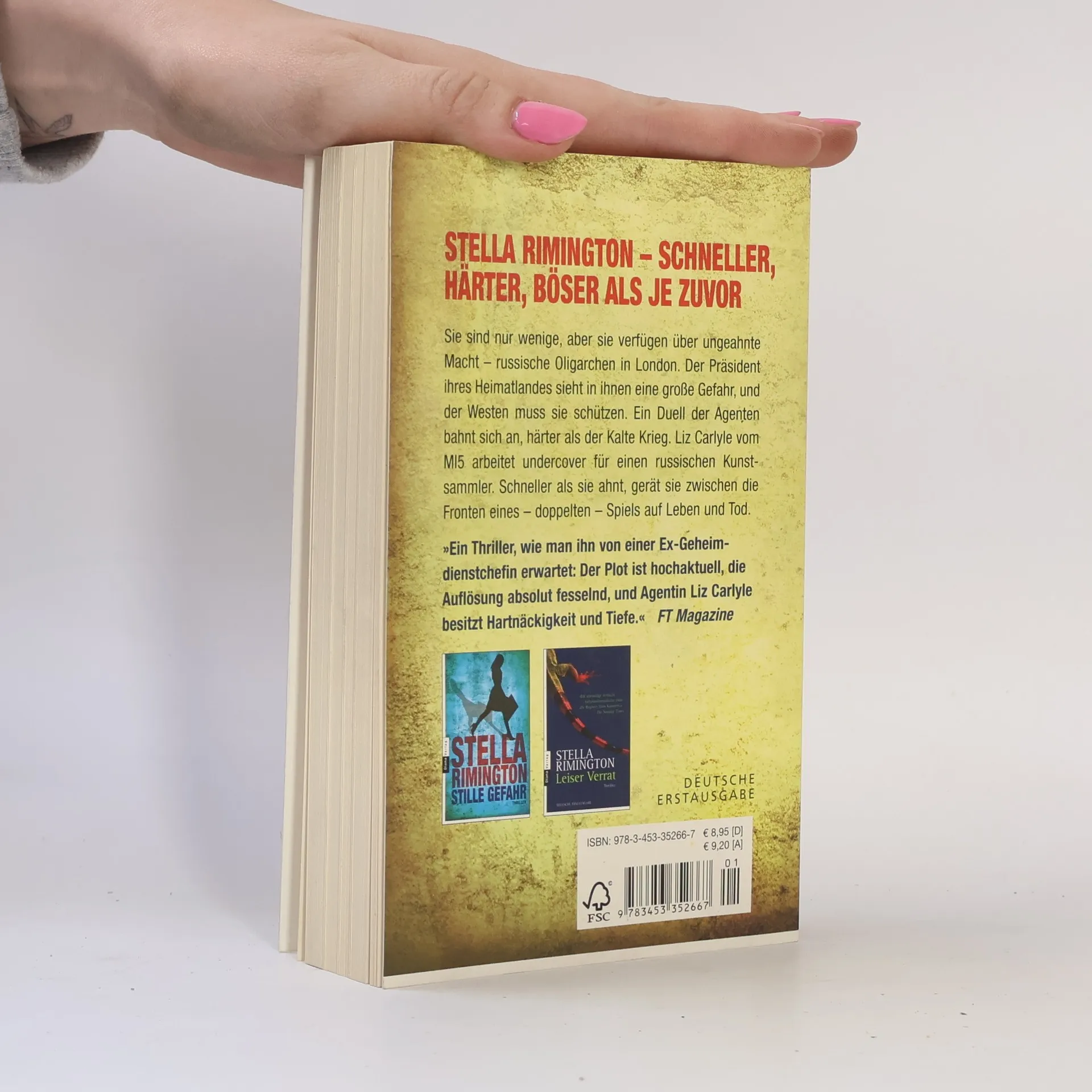 Stella Rimington – schneller, härter, böser als je zuvor Sie sind nur wenige, aber sie verfügen über ungeahnte Macht – russische Millionäre in London. Der Präsident ihres Heimatlandes sieht in ihnen eine große Gefahr, und der Westen muss sie schützen. Ein Duell der Agenten bahnt sich an, härter als der Kalte Krieg. Liz Carlyle vom MI5 arbeitet undercover für einen russischen Kunstsammler. Schneller als sie ahnt, gerät sie zwischen die Fronten eines–doppelten–Spiels auf Leben und Tod.