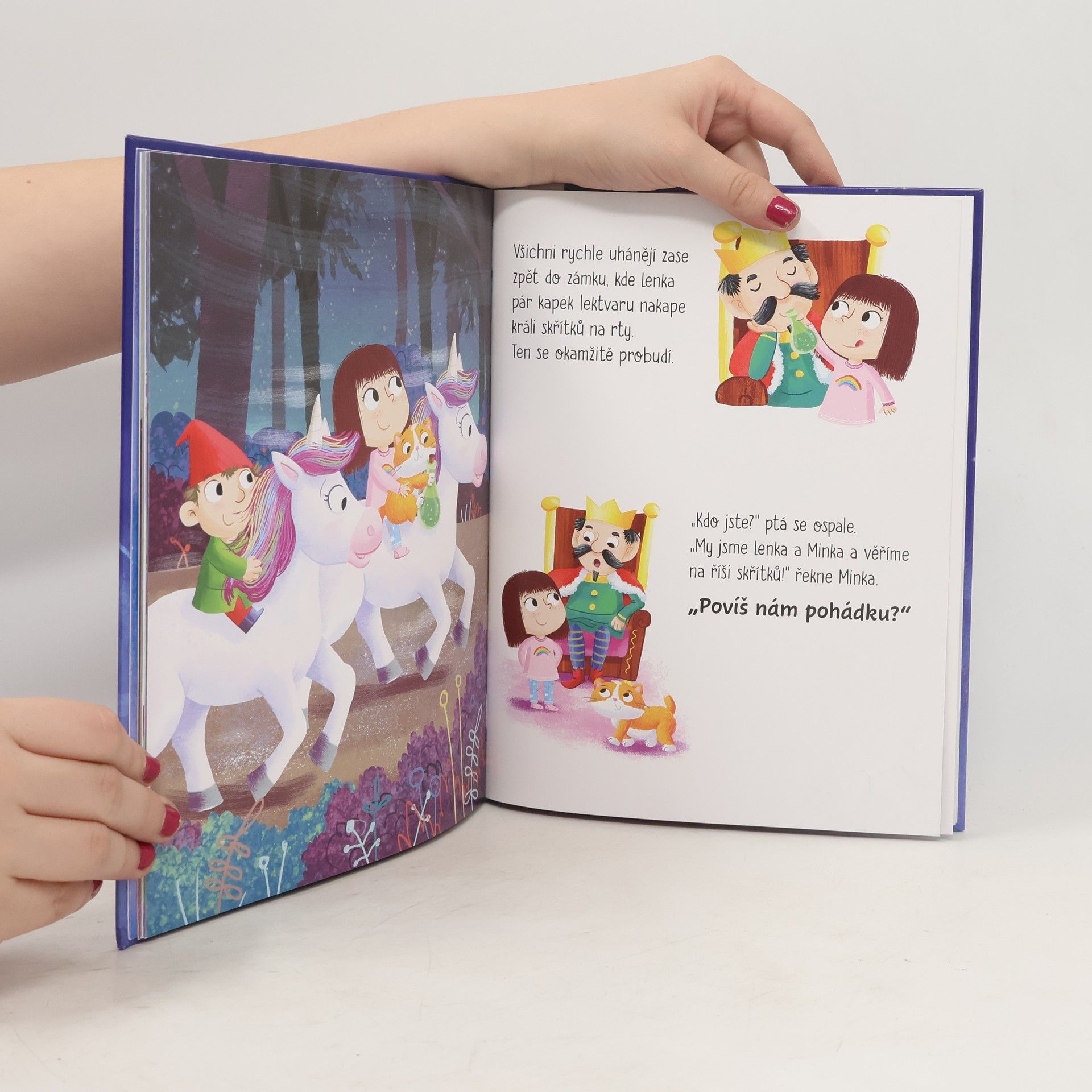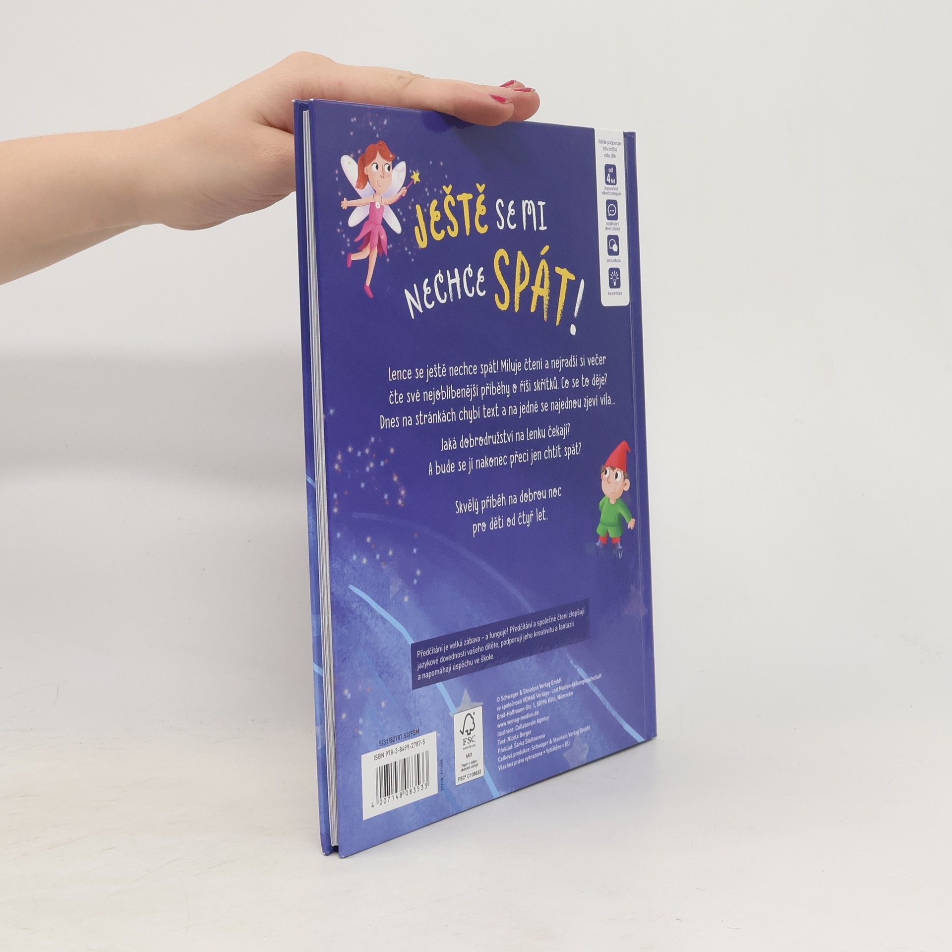 Lence se ještě nechce spát! Miluje čtení a nejradši si večer čte nejoblíbenější příběhy o říši skřítků. Co se to děje? Dnes na stránkách chybí text a na jedné se najednou zjeví víla... Jaká dobrodružství na Lenku čekají? A bude se jí nakonec přeci jen chtít spát? Skvělý příběh na dobrou noc pro děti od čtyř let. Knížka u dětí podporuje rozšiřování slovní zásoby, komunikaci a koncentraci.