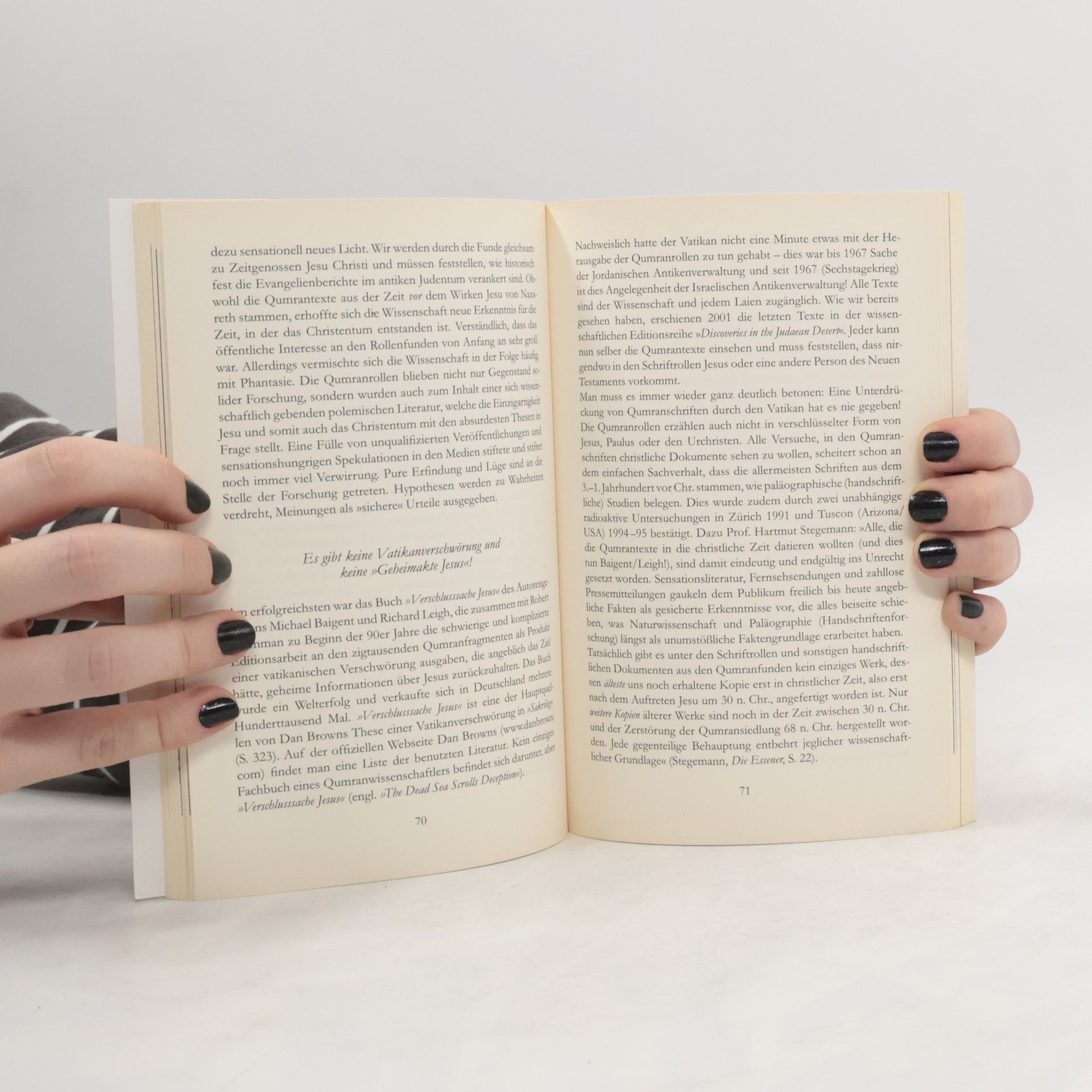 In „Das wahre Sakrileg“ analysieren Fachleute und Wissenschaftler die Thesen von Dan Brown. Alexander Schick, ein Qumran-Experte, widerlegt Browns Theorien über die berühmten Schriftrollen und entzieht damit der Hintergrundgeschichte von Sakrileg die Grundlage. Der renommierte Handschriftenforscher Michael Welte von der Universität Münster klärt über die geheimen Evangelien von Nag Hammadi auf. Schick und Welte untersuchen Fragen wie: Gab es kirchliche Zensur unter Konstantin? War Jesus verheiratet? Existieren bedeutende Geheimgesellschaften wie die „Prieuré de Sion“? Was ist der Heilige Gral? Wurde Jesus per Abstimmung zum Sohn Gottes gewählt? Wurde die Bibel verfälscht? Zudem äußern sich international bekannte Wissenschaftler, Archäologen und Theologen zu Browns gewagten Thesen. Ein weiterer Fokus liegt auf dem letzten Abendmahl. Hat Leonardo Da Vinci geheime Hinweise in seinen Werken hinterlassen, die eine Beziehung zwischen Jesus und Maria beweisen? Prof. Zöllner von der Uni Leipzig, ein führender Leonardoforscher, zeigt auf, was in den Gemäldeinterpretationen von Dan Brown Fakt und was Mythos ist. „Das wahre Sakrileg“ belegt, dass die Wirklichkeit spannender ist als jede Fiktion – der Thriller hinter dem Thriller.