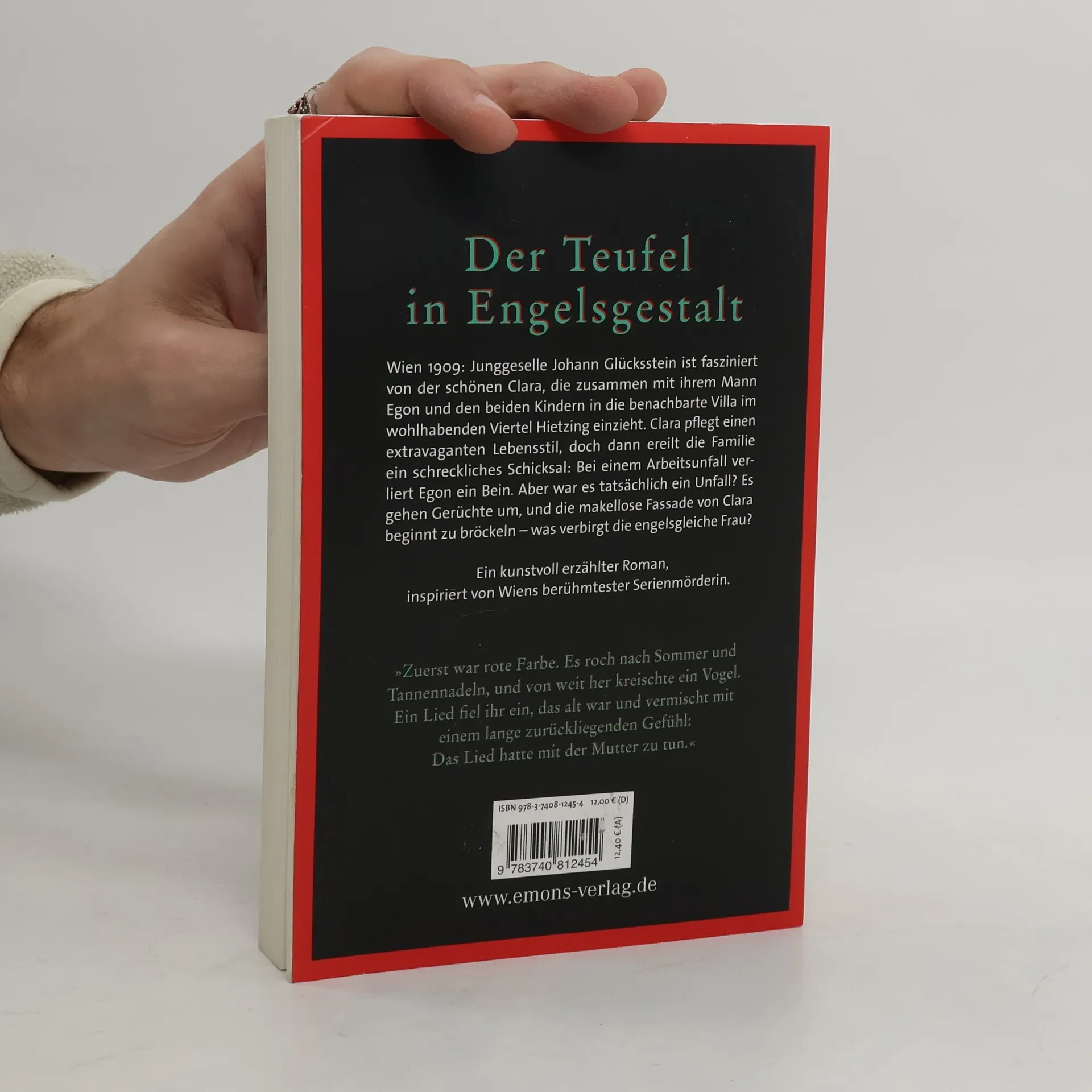 Historische Fakten und phantasiereiche Fiktion kunstvoll verwoben zu einem besonderen Roman. Wien 1909: Der junge Historiker Johann ist fasziniert von der schönen Clara, die zusammen mit ihrem Mann Egon und den beiden Kindern in die benachbarte Villa im wohlhabenden Viertel Hietzing einzieht. Clara pflegt einen extravaganten Lebensstil, doch dann ereilt die Familie ein schreckliches Schicksal: Bei einem Arbeitsunfall verliert Egon ein Bein. Aber war es tatsächlich ein Unfall? Es gehen Gerüchte um, und die makellose Fassade von Clara beginnt zu bröckeln – was verbirgt die engelsgleiche Frau?