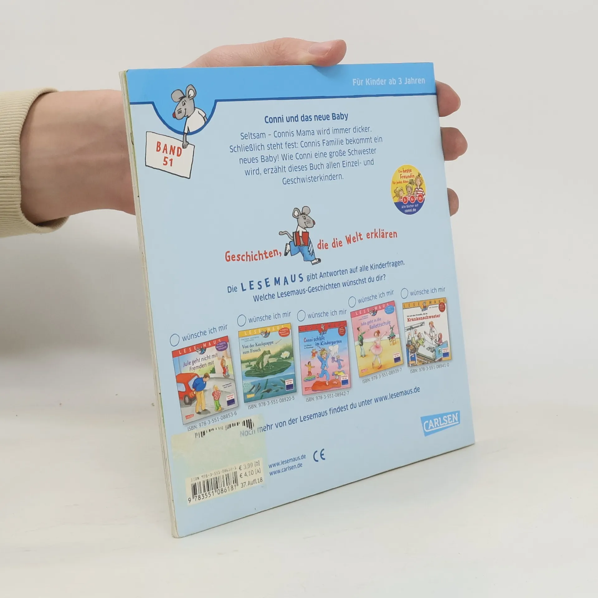 Familienzuwachs bei Conni Seltsam, Connis Mama wird immer dicker. Schließlich steht fest: Connis Familie bekommt ein neues Baby! Wie Conni eine große Schwester wird, erzählt dieses Buch allen Einzel- und Geschwisterkindern. *** LESEMAUS – Geschichten, die die Welt erklären! *** Die Bilderbücher für Kinder ab 3 Jahren sind ideal zum gemeinsamen Anschauen und Vorlesen. Verständliche Texte und hochwertige Illustrationen vermitteln erstes Sachwissen zu wichtigen Themen aus dem Kinderalltag. Empfohlen von der Stiftung Lesen.