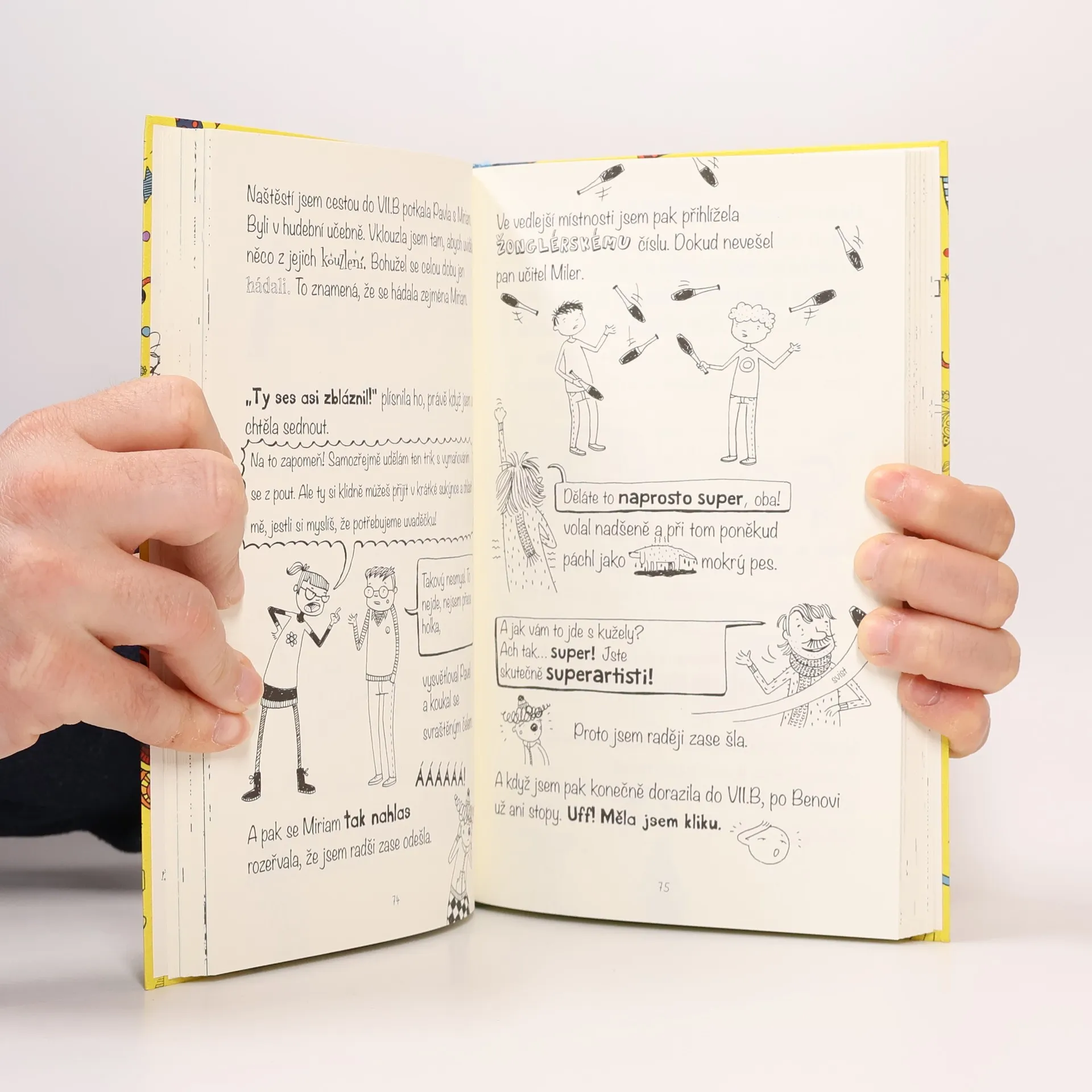 Ty brďo! Naše třída má nacvičovat zábavný program k otevření nové tělocvičny, což by mohlo být super. Jenže nemůžu cvičit zvířata se Xeňou, jak bych chtěla, ale místo toho musím hrát klauna spolu s Benem z Rokerů. To je snad zlý sen! Naštěstí mám vždycky po ruce svou zobcovou flétnu… Kromě toho přijede na návštěvu bratranec Láďa, a tak se na vystoupení nesmí nic pokazit!