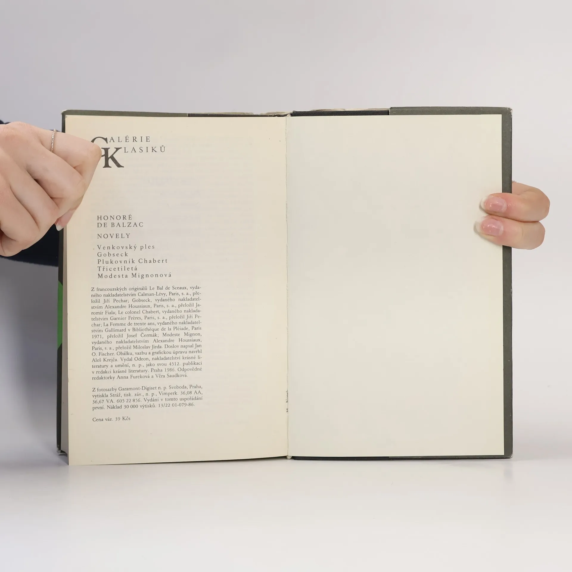 Soubor Balzacových tří novel (Venkovský ples, 1830; Gobseck, 1830; Plukovník Chabert, 1832) a dvou románů (Třicetiletá, 1842; Modesta Mignonová, 1844) si všímá soukromých komorních dramat, jež mnohdy zůstávají povrchnímu pozorovateli utajena. Můžeme se vžívat do příběhu zhýčkané oslňující dívky, jež se zříká možného štěstí, neboť "původ" má pro ni větší cenu než morální kvality člověka (Venkovský ples), s hrůzou budeme sledovat nesoudnou ženu, která bezohledně ve jménu vášně k vypočítavému hejskovi ničí sebe i svou rodinu (Gobseck), spoluprožijeme neštěstí muže, jenž se doslova vrací ze záhrobí a zjišťuje, že někdejší postavení je pro něho nenávratně ztraceno (Plukovník Chabert). Zamyslíme se nad problematickým údělem citově založené ženy v nenaplněném manželství (Třicetiletá) a nejspíš s Balzacem samým budeme shlížet do hlubin propasti mezi ideálem a skutečností (Modesta Mignonová). 01-079-86