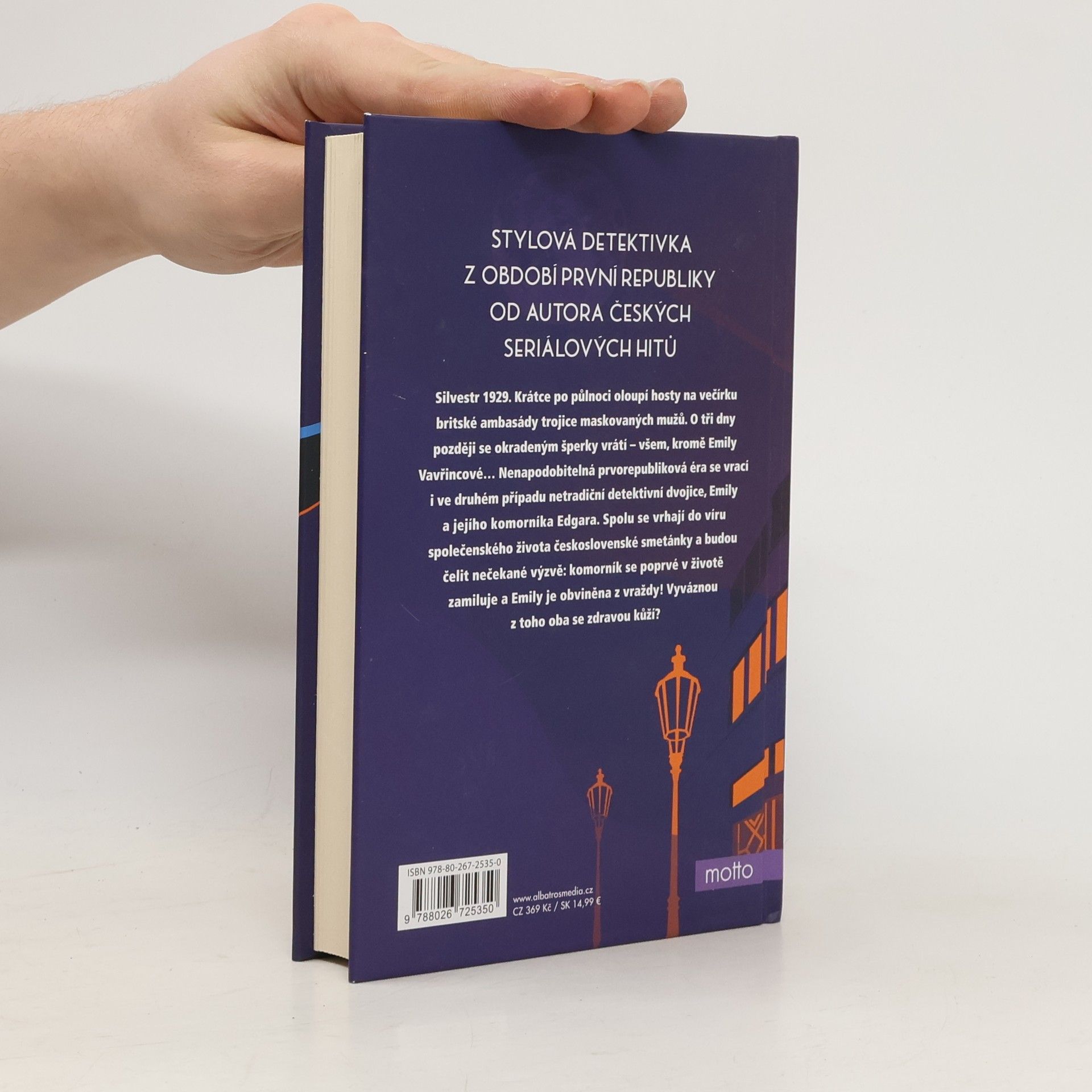 Stylová detektivka z období první republiky. Od autora českých seriálových hitů.Silvestr 1929. Krátce po půlnoci oloupí hosty na večírku britské ambasády trojice maskovaných mužů. O tři dny později se okradeným šperky vrátí – všem, kromě Emily Vavřincové... Nenapodobitelná prvorepubliková éra se vrací i ve druhém případu netradiční detektivní dvojice, Emily a jejího komorníka Edgara. Spolu se vrhají do víru společenského života československé smetánky a budou čelit nečekané výzvě: komorník se poprvé v životě zamiluje a Emily je obviněna z vraždy! Vyváznou z toho oba se zdravou kůží?