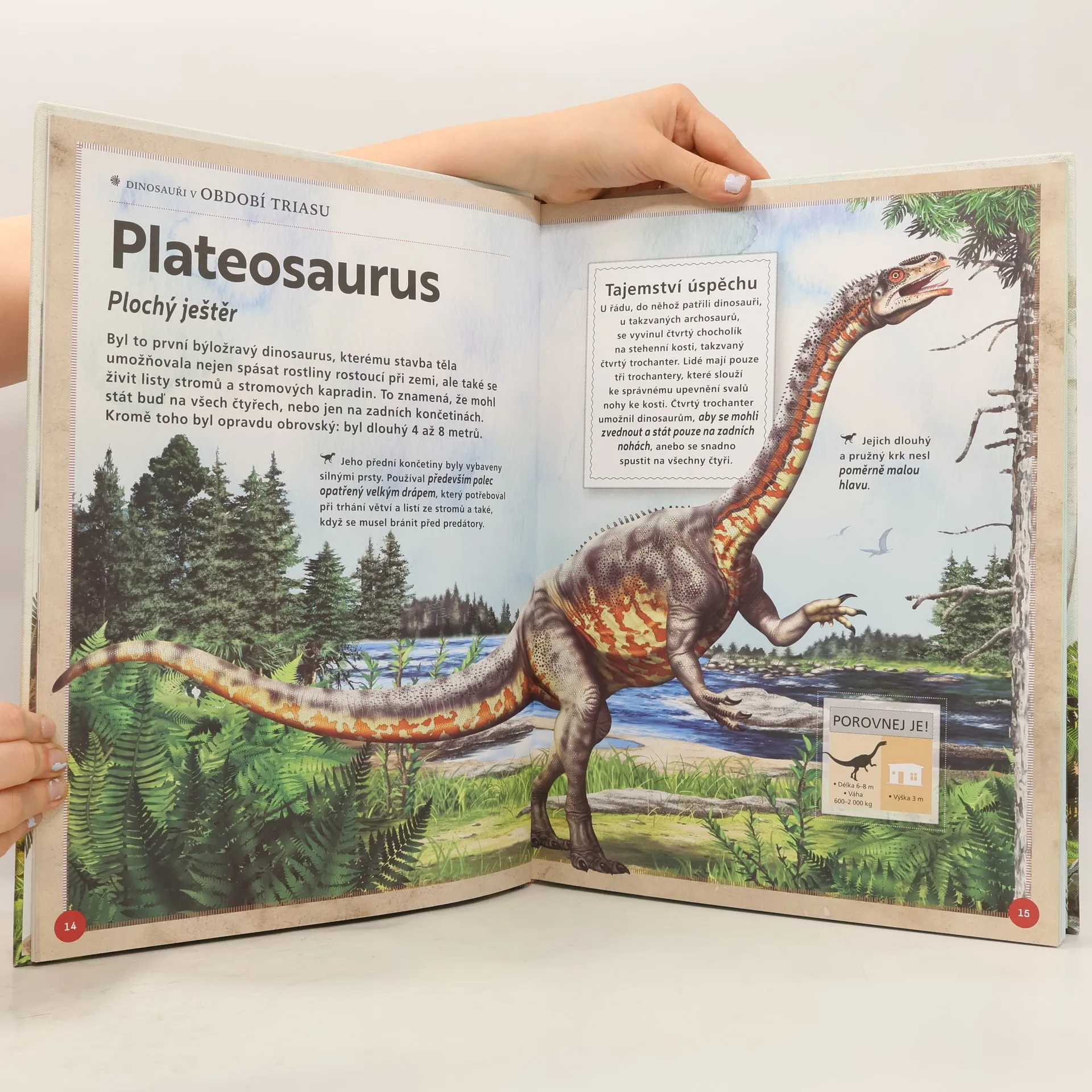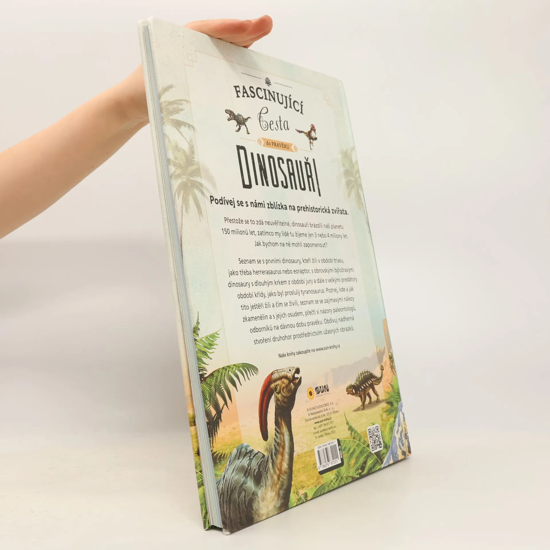 Fascinující cesta do pravěku. Krásná, velkoformátová encyklopedie. Podívej se s námi zblízka na prehistorická zvířata. Přestože se to zdá neuvěřitelné, dinosauři brázdili naši planetu 150 milionů let zatímco my lidé tu žijeme jen 3 nebo 4 milióny let. Jak bychom na ně mohli zapomenout? Seznam se s prvními dinosaury, kteří žili v období triasu, jako třeba herrerasaurus nebo eoraptor, s obrovskými býložravými dinosaury s dlouhým krkem z období jury, a dále s velkými predátory období křídy, jako byl proslulý tyrannosaurus rex. Poznej, kde a jak ti to ještěři žili a čím se živili, seznam se se zajímavými nálezy zkamenělin a s jejich osudem, přečti si názory paleontologů, odborníků na dávnou dobu pravěku. Obdivuj nádherná stvoření druhohor prostřednictvím úžasných obrázků.