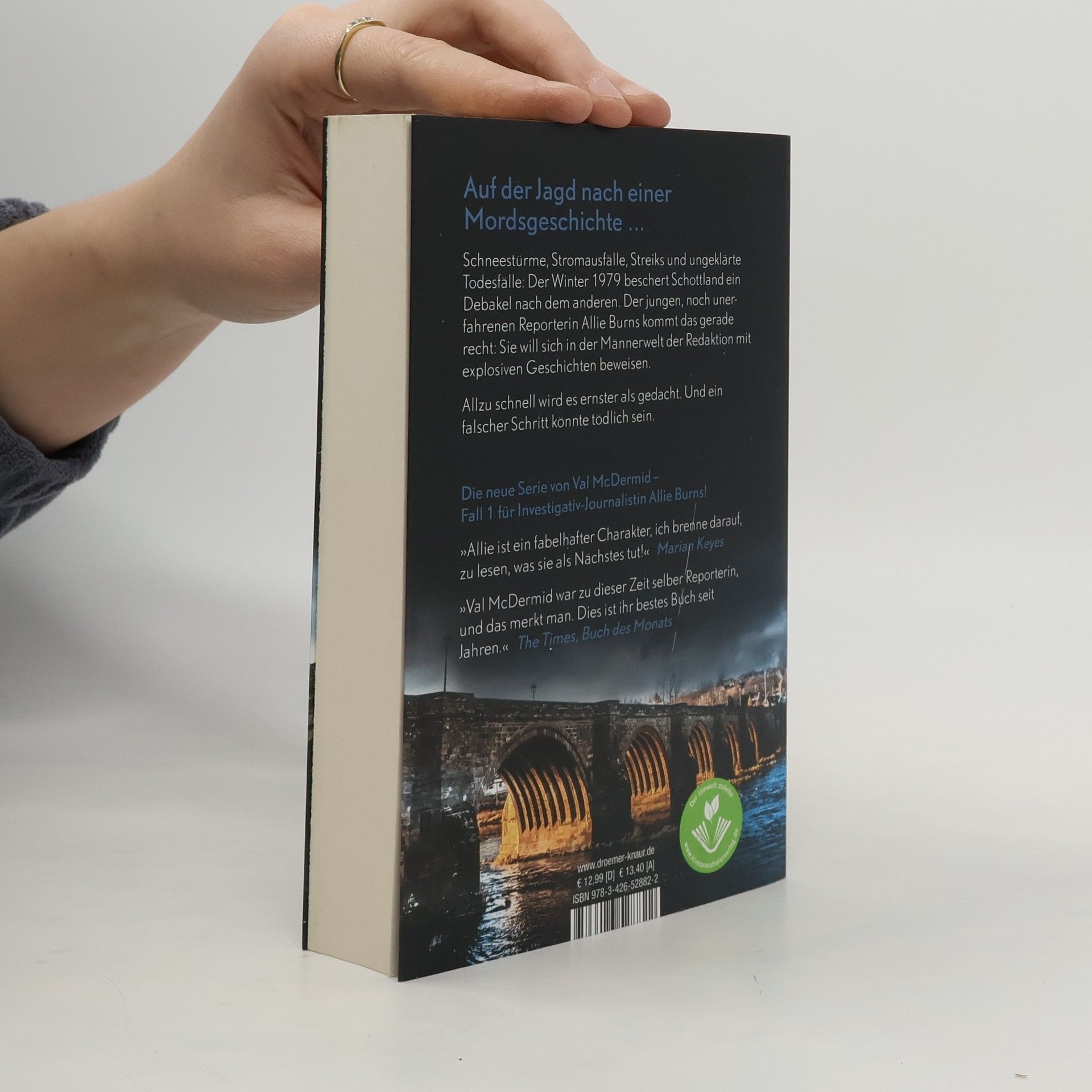 Um die Wahrheit ans Licht zu bringen, muss sie sich ins Herz der Finsternis wagen: 1979 ist der erste Fall für Investigativ-Journalistin Allie Burns von Bestseller-Autorin Val McDermid. Der Winter 1979 bringt in Schottland Schneestürme, Stromausfälle, Streiks und ungeklärte Todesfälle. Für die junge Journalistin Allie Burns sind diese schlechten Nachrichten die einzige Möglichkeit, über Familiendramen und Babywunder hinaus zu berichten und im „Boys' Club“ der Zeitung ernst genommen zu werden. Gemeinsam mit ihrem Kollegen Danny Sullivan stößt Allie auf eine potenzielle terroristische Bedrohung und schmiedet einen riskanten Plan, bei dem jeder Schritt ihr letzter sein könnte. Val McDermid hat mit Allie Burns eine Thriller-Heldin geschaffen, die alles riskiert, um die Wahrheit aufzudecken. „Val McDermids 1979 ist wie immer vollgepackt mit brillanten Ideen und liefert, wie ein gelungener Schnappschuss, die Essenz einer faszinierenden Zeit.“ – Jane Harper „Allie ist ein fabelhafter Charakter, ich folge ihr, wohin auch immer sie mich führt, und ich brenne darauf zu lesen, was sie als Nächstes tut.“ – Marian Keyes