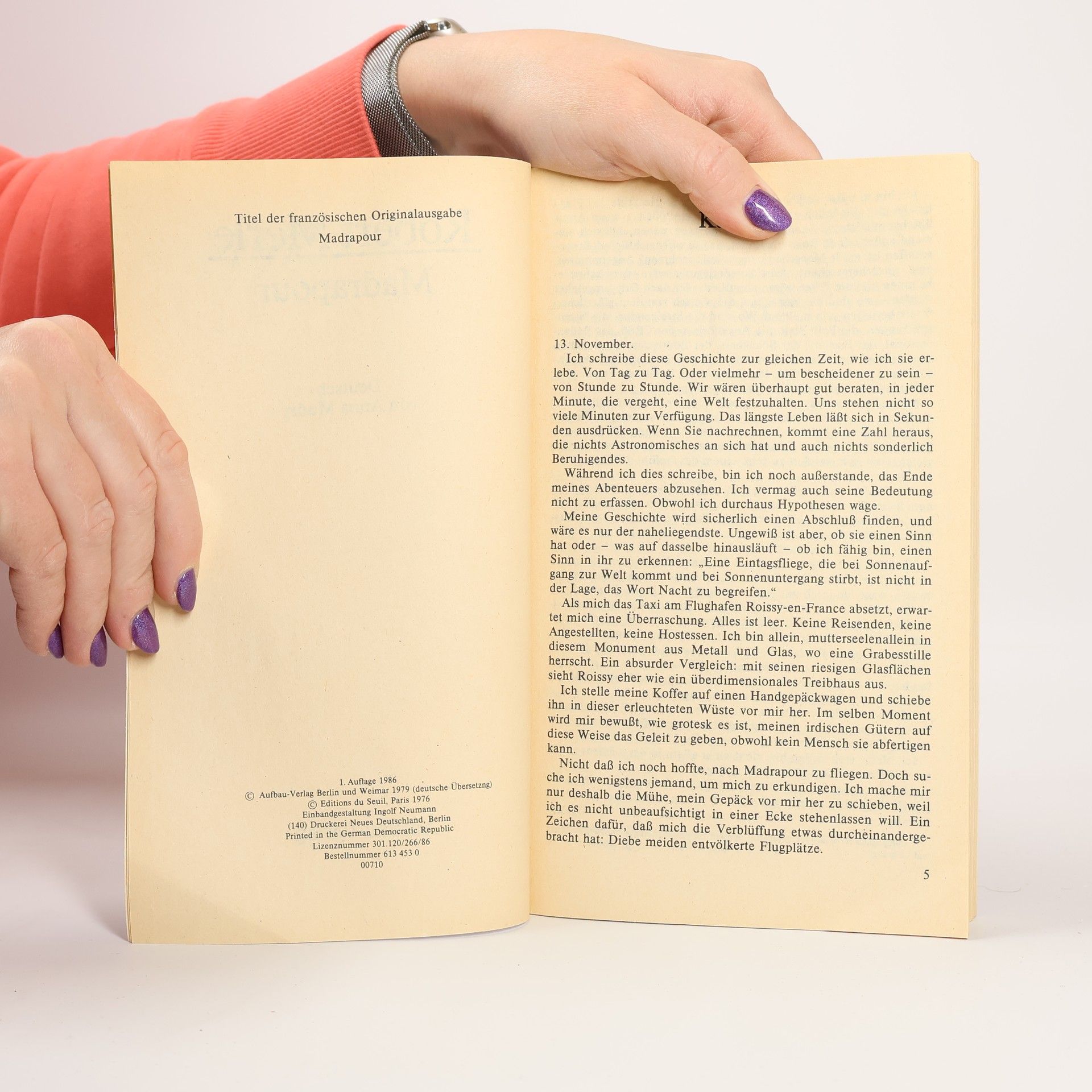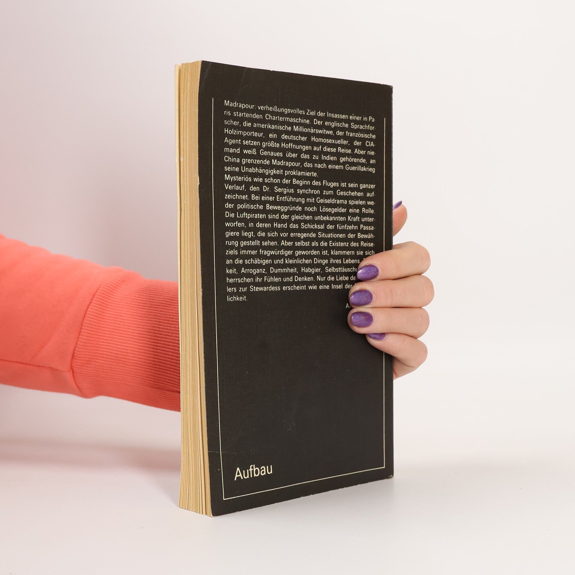 Das längste Leben läßt sich in Sekunden ausdrücken Eine in Paris gestartete Chartermaschine mit fünfzehn Passagieren an Bord ist unterwegs zu einem verheißungsvollen Ziel namens Madrapour, wo man erotische Abenteuer, Geschäfte, Vergnügen sucht. Luftpiraten bemächtigen sich der Maschine und berauben die Passagiere ihrer Pässe, ihres Geldes, lassen sie aber weiterfliegen. Panik setzt ein, als merkwürdige Ereignisse an Bord darauf hindeuten, daß das Flugzeug ferngesteuert wird ... Robert Merle erzählt mit diesem utopischen Roman, der zu einem Klassiker wurde, eine packende Geschichte, die ein Gleichnis des Lebens ist.