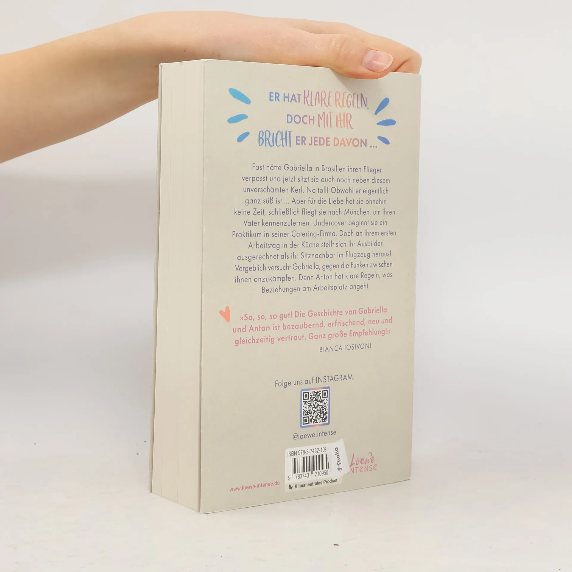 Das Buch ist bei deiner Buchhandlung vor Ort und bei vielen Online-Buchshops erhältlich! Mitreißend, prickelnd, ergreifend! - Die Reihe mit Herzklopfgarantie. Er hat klare Regeln. Doch mit ihr bricht er jede davon … Fast hätte Gabriella in Brasilien ihren Flieger verpasst und jetzt sitzt sie auch noch neben diesem unverschämten – oder eher unverschämt gut aussehenden? – Kerl. Na toll! Obwohl er eigentlich ganz süß ist … Aber für die Liebe hat sie ohnehin keine Zeit, schließlich fliegt sie nach München, um ihren Vater kennenzulernen. Undercover beginnt sie ein Praktikum in seiner Catering-Firma. Doch an ihrem ersten Arbeitstag in der Küche stellt sich ihr Ausbilder ausgerechnet als Anton aka ihr Sitznachbar im Flugzeug heraus! Vergeblich versucht Gabriella, gegen die Funken zwischen ihnen anzukämpfen. Denn Anton hat klare Regeln, was Beziehungen am Arbeitsplatz angeht. »So, so, so gut! Die Geschichte von Gabriella und Anton ist bezaubernd, erfrischend, neu und gleichzeitig vertraut. Ganz große Empfehlung!« Bianca Iosivoni Vielleicht jetzt hat alles, was Leser*innen an New Adult lieben: eine tolle, selbstbewusste Protagonistin, ein Love Interest zum Dahinschmelzen und eine mitreißende Liebesgeschichte. Ein erfrischender Roman mit Herz, Humor und ganz viel Gefühl.