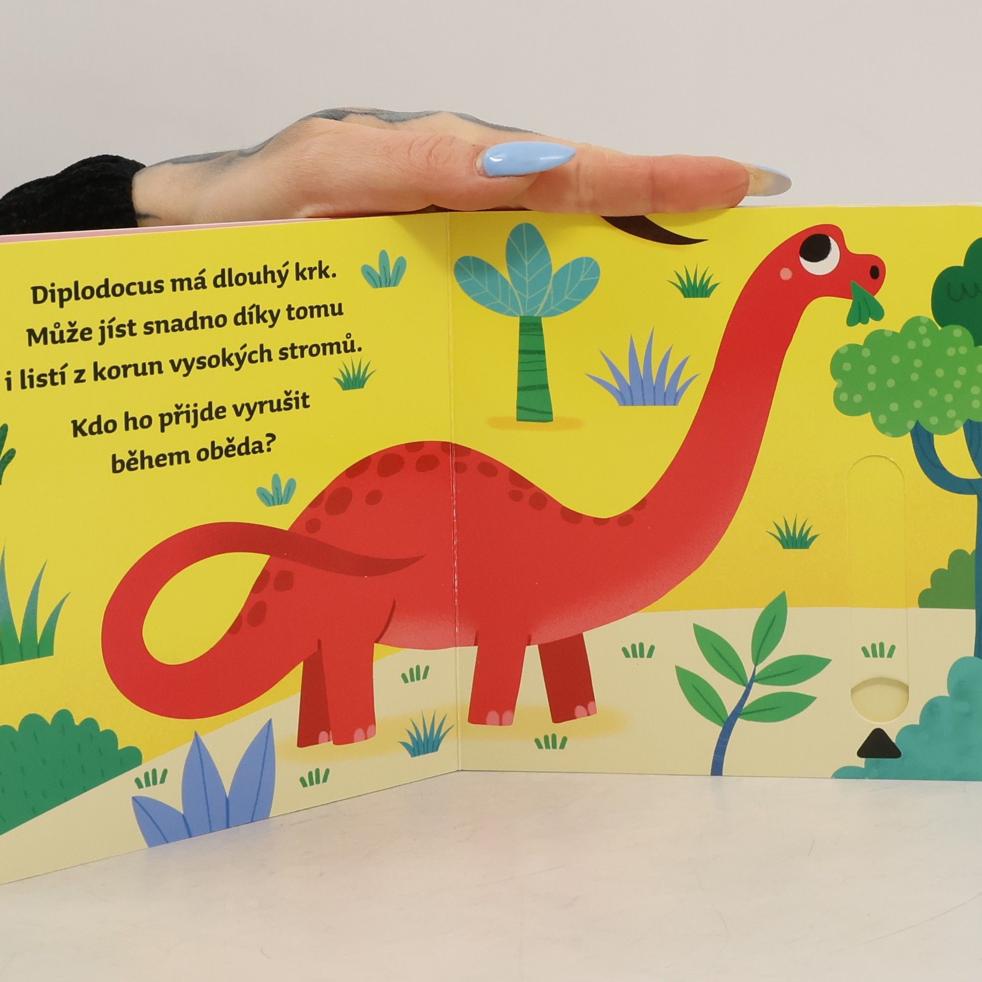 Na každé stránce najdeš okénko, posuň ho, vytáhni a objev svět dinosaurů.Leporelo s pohyblivými prvky, ideální pro malé ručičky.