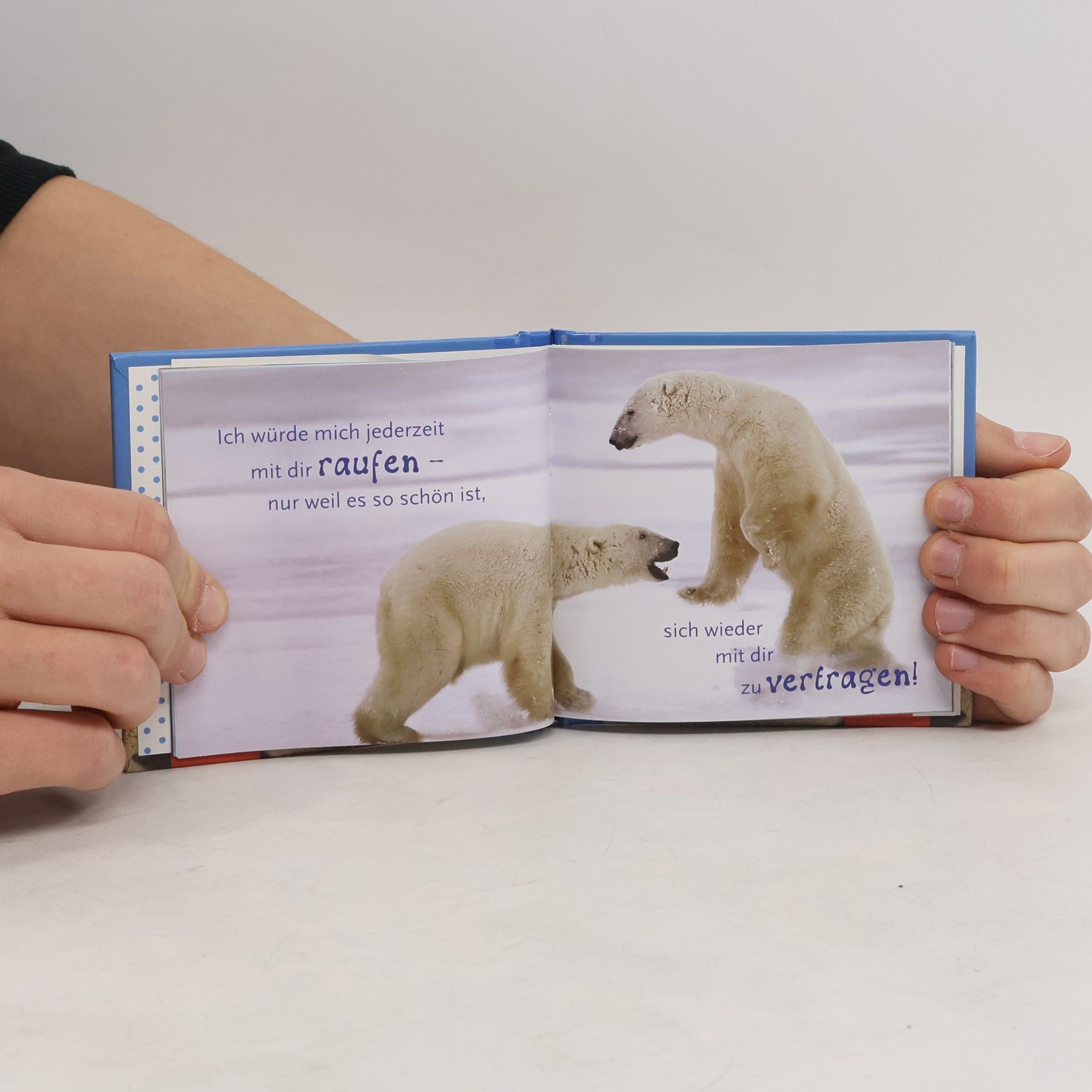 Eine tierische Liebeserklärung in Buchform „Ich hab dich sooo lieb, dass ich dich manchmal ganz fest drücken muss, um zu wissen, ob du wirklich echt bist.“ - Über liebe Worte freut sich jeder. Nur fällt es uns manchmal gar nicht so leicht, die richtigen Worte zu finden, die anderen zeigen, wie wichtig sie uns sind. Die niedlichen Eisbären in diesem Mini-Buch überbringen ihre Liebeserklärung auf besonders charmante Art und fragen am Ende zu Recht: „Weißt du jetzt, wie lieb ich dich hab?“ Ein kleines Buch voll Herzenswärme und Humor In diesem liebevoll gestalteten Büchlein überbringen niedliche Eisbären kleine Liebesbotschaften, die dem Beschenkten zeigen, wie lieb Sie ihn haben. Ein schönes Geschenk für Männer und Frauen. Praktisches Mini-Format mit 48 Seiten Hochwertiges FSC-zertifiziertes Papier Persönliche Kurztexte mit „Du“-Ansprache Lustige Eisbär-Fotografien verstärken die Textbotschaften Kleines Mitbringsel, z. B. zum Geburtstag, Jahrestag, zu Ostern oder einfach so zwischendurch Du weißt gar nicht, wie lieb ich dich hab Dieses Buch ist eine wunderschöne Liebeserklärung für alle, denen wir schon längst einmal sagen wollten, wieviel sie uns bedeuten. Überraschen Sie Ihre Liebsten!