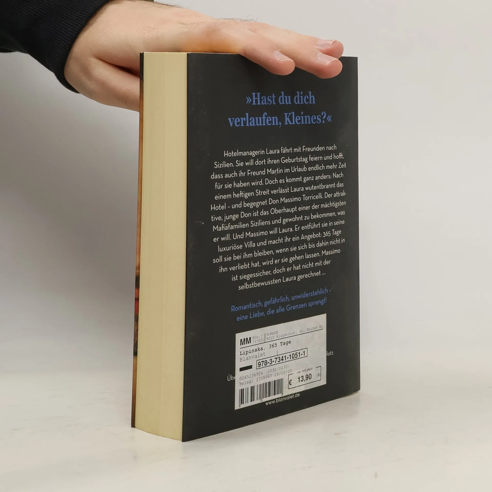 Laura Biel & Massimo Torricelli – eine unwiderstehlich gefährliche Leidenschaft. Die Romanvorlage zum internationalen NETFLIX-BLOCKBUSTER! Hotelmanagerin Laura fährt mit Freunden nach Sizilien. Sie will dort ihren Geburtstag feiern und hofft, dass auch ihr Freund Martin im Urlaub endlich mehr Zeit für sie haben wird. Doch es kommt ganz anders: Nach einem heftigen Streit verlässt Laura wutentbrannt das Hotel – und begegnet Don Massimo Torricelli. Der attraktive, junge Don ist das Oberhaupt einer der mächtigsten Mafia-Familien Siziliens und gewohnt zu bekommen, was er will. Und Massimo will Laura. Er entführt sie in seine luxuriöse Villa und macht ihr ein Angebot: 365 Tage soll sie bei ihm bleiben, wenn sie sich bis dahin nicht in ihn verliebt hat, wird er sie gehen lassen. Massimo ist siegessicher, doch er hat nicht mit der selbstbewussten Laura gerechnet … Die Geschichte von Laura & Massimo: Band 1: 365 Tage Band 2: 365 Tage - Dieser Tag Band 3: 365 Tage mehr