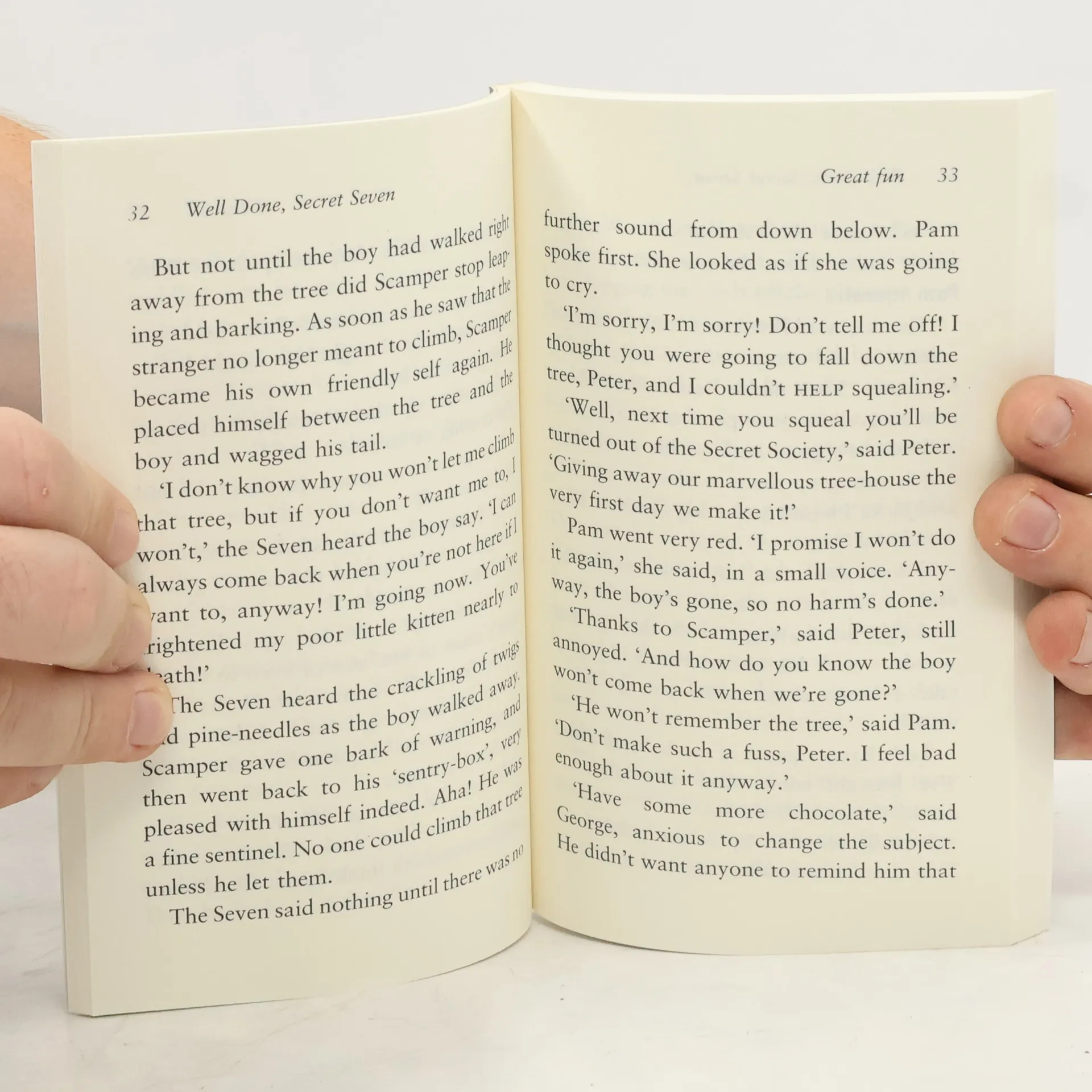 The Secret Seven have built a new meeting place -a tree house! - and they can't wait to start using it! But they soon realise that they're not the only ones using the tree house - somebody else is using it, too. When they find out who it is, the Seven are outraged. But then they discover that their intruder is in trouble, he's on the run from a gang of thieves, and he needs their help. But are the gang up to the job?