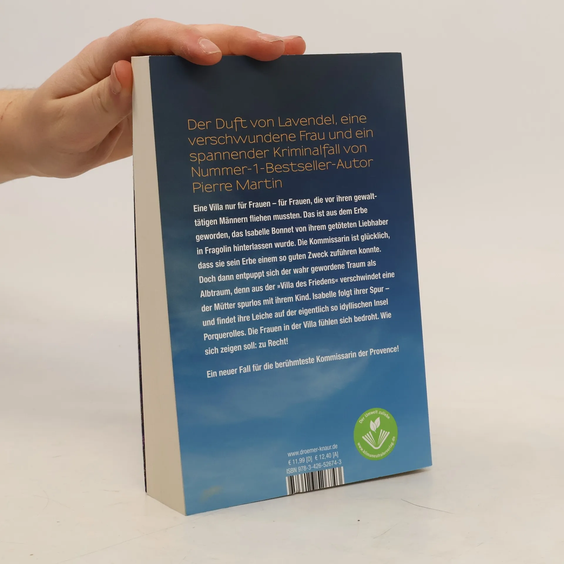 Urlaubsflair, liebenswerte Figuren und ein bedrohter Schutzort für Frauen – der neunte Fall in der Krimi-Reihe um Kommissarin Isabelle Bonnet ist ein Kriminalroman, der nach Lavendel duftet. Isabelle Bonnet hätte nie gedacht, dass sie eine Villa nur für Frauen leiten würde, die vor gewalttätigen Partnern fliehen. Diese Villa, die Thierry in Fragolin hinterlassen hat, sollte ein Ort des Friedens sein. Doch als eine Mutter mit ihrem Kind spurlos aus der „Villa des Friedens“ verschwindet, wird der Traum zum Alptraum. Isabelle folgt der Spur und findet die Leiche auf der idyllischen Insel Porquerolles. Die Frauen in der Villa fühlen sich zunehmend bedroht – und das zu Recht. Die weiteren Bände der erfolgreichen Südfrankreich-Krimi-Serie um Isabelle Bonnet von Bestseller-Autor Pierre Martin sind in folgender Reihenfolge erschienen: Band 1: Madame le Commissaire und der verschwundene Engländer, Band 2: Madame le Commissaire und die späte Rache, Band 3: Madame le Commissaire und der Tod des Polizeichefs, Band 4: Madame le Commissaire und der verschwundene Bild, Band 5: Madame le Commissaire und die tote Nonne, Band 6: Madame le Commissaire und der tote Liebhaber, Band 7: Madame le Commissaire und die Frau ohne Gedächtnis, Band 8: Madame le Commissaire und die panische Diva.