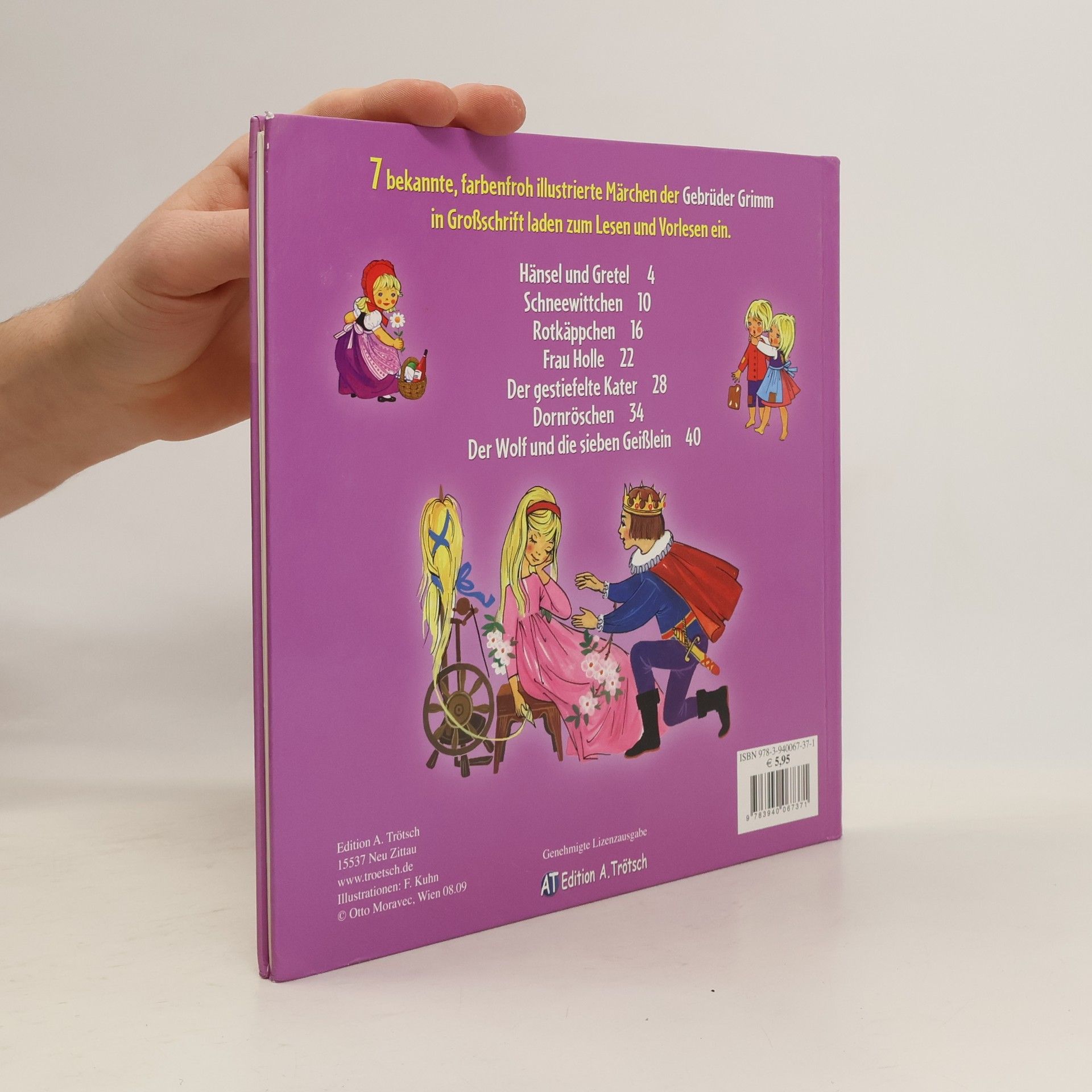 Märchensammlung der Brüder Grimm: Elf der bekanntesten Märchen der Brüder Grimm, vom Aschenputtel, Schneewittchen, Tischlein-Deck-Dich bis hin zu Hänsel und Gretel und Gestiefelter Kater sind in diesem Buch enthalten. Der bekannte Illustrator Otto S. Svend hat für jedes Märchen viele Bilder geschaffen, auf denen wichtige Märchenszenen festgehalten werden. Dramatisch, ausdrucksstark und lebendig wirken die Bilder auf den Betrachter. Die grimmsche Märchenwelt erwacht darin zum Leben und verzaubert Gross und Klein. Zum Selberlesen, Erzählen, Betrachten und Verweilen ein faszinierender Märchengenuss. ab 4 Jahren, ausgezeichnet, BB.
