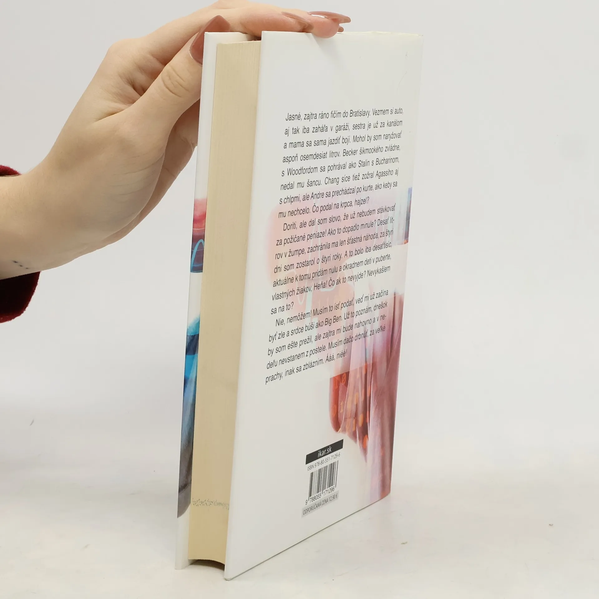 Jasné, zajtra ráno fičím do Bratislavy. Vezmem si auto, aj tak iba zaháľa v garáži, sestra je už za kanálom a mama sa sama jazdiť bojí. Mohol by som naryžovať aspoň osemdesiat litrov. Becker šikmookého zvládne, s Woodfordom sa pohrával ako Stalin s Bucharinom, nedal mu šancu. Chang síce tiež zožral Agassiho aj s chlpmi, ale Andre sa prechádzal po kurte, ako keby sa mu nechcelo. Čo podal na krpca, hajzel? Doriti, ale dal som slovo, že už nebudem stávkovať za požičané peniaze! Ako to dopadlo minule? Desať litrov v žumpe, zachránila ma len šťastná náhoda, za štyri dni som zostarol o štyri roky. A to bolo iba desaťtisíc, aktuálne k tomu pridám nulu a okradnem deti v puberte, vlastných žiakov, Heňa! Čo ak to nevyjde? Nevykašlem sa na to? Nie, nemôžem! Musím to ísť podať, veď mi už začína byť zle a srdce búši ako Big Ben. Už to poznám, dnešok by som ešte prežil, ale zajtra mi bude nahovno a v nedeľu nevstanem z postele. Musím dačo drbnúť, za veľké prachy, inak sa zbláznim. Ááá, niéé!